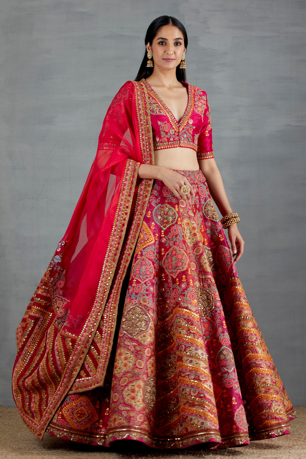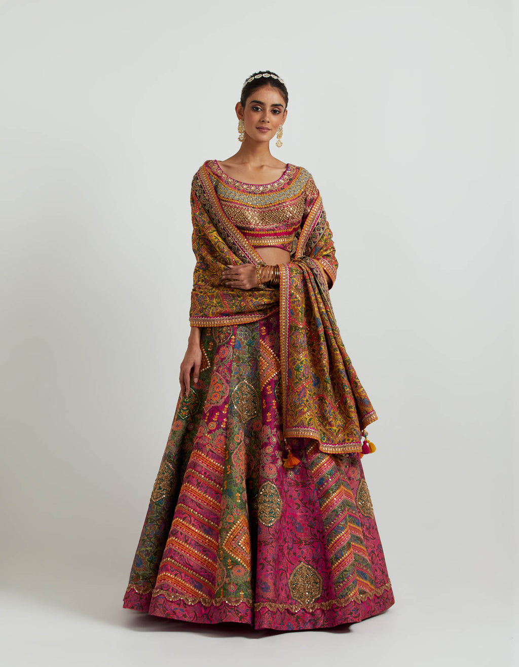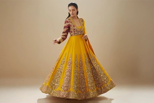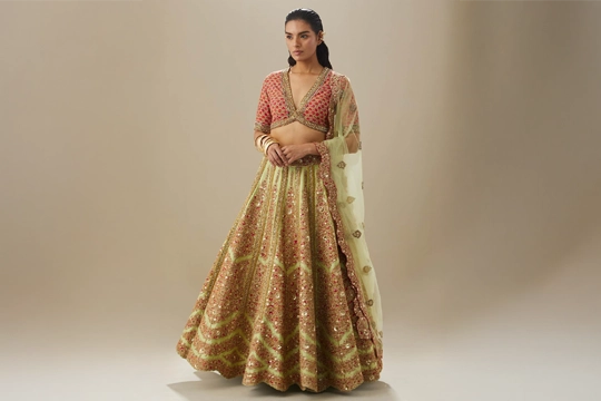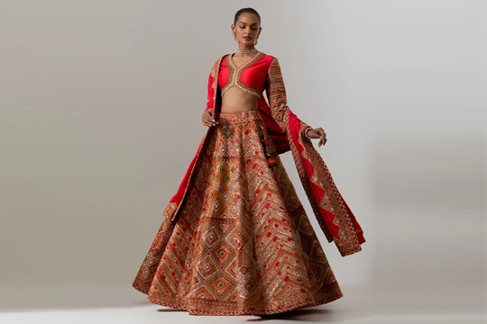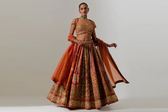 Maroon And Brown Shimi Shimi Akashtara Lehenga with 24 Kalis