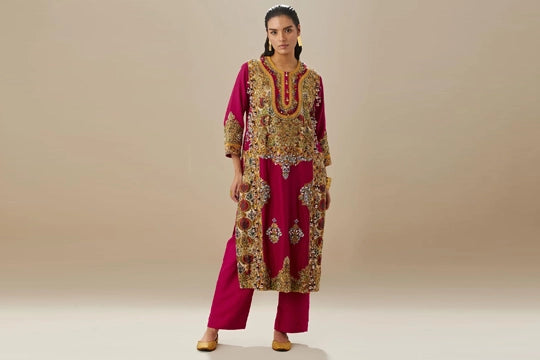 Magenta Mogra Kurta Set