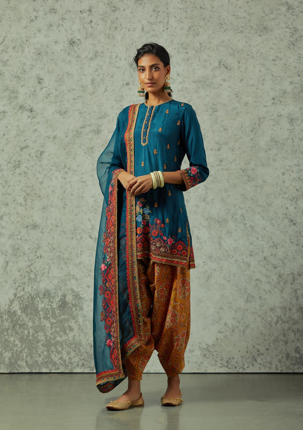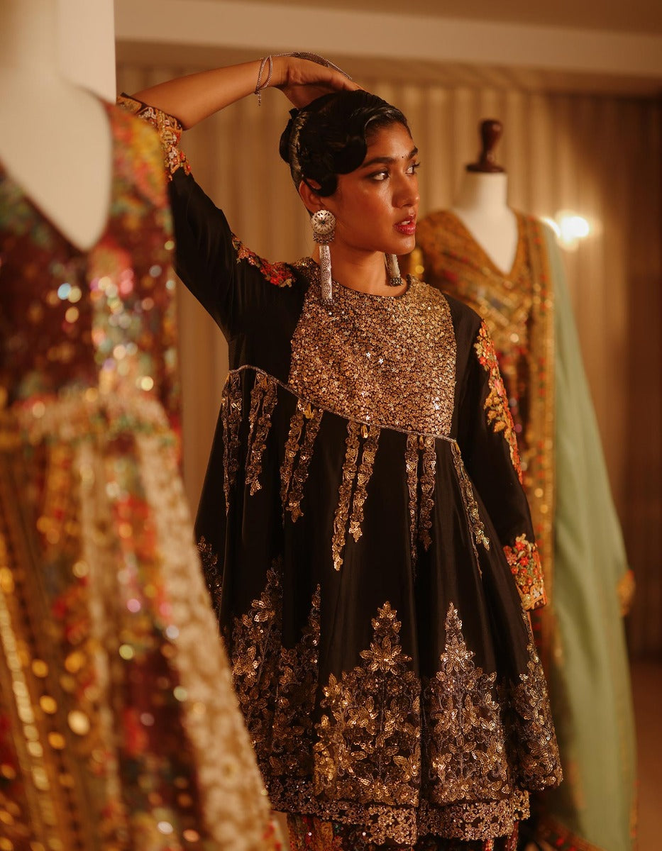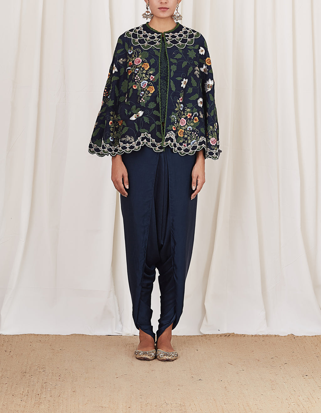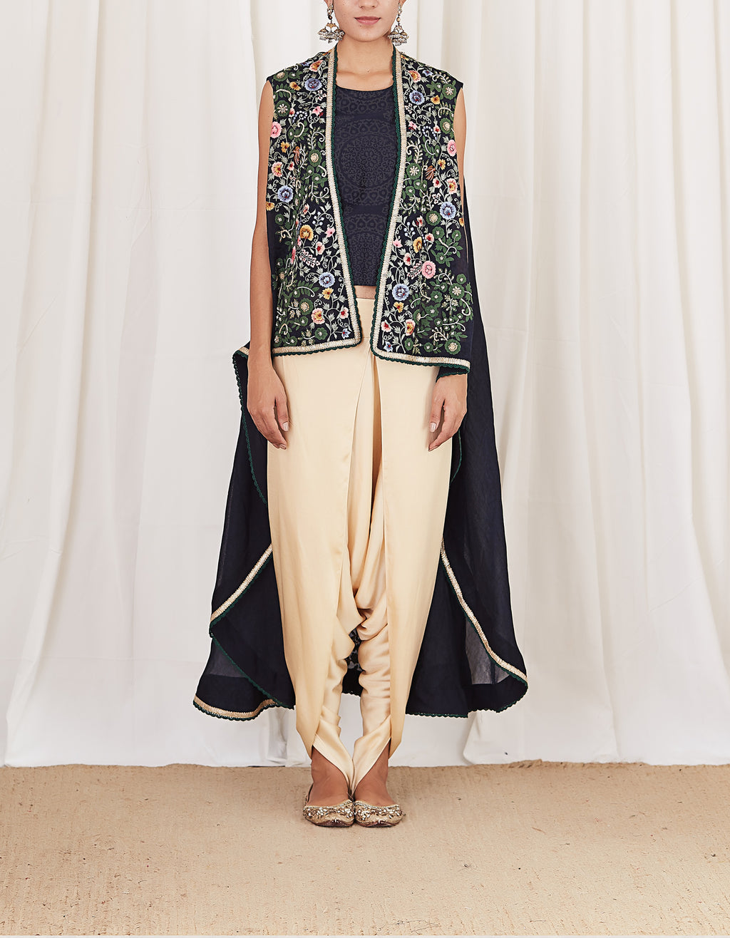 Black Short Kurta With Printed Shimmer Dhoti Pants