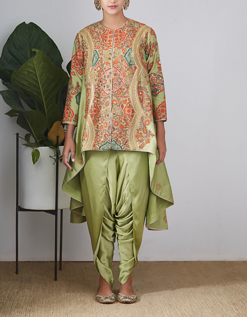 Pista Green Chanderi Sequins Trail Ambi Boota Jacket with Salwar