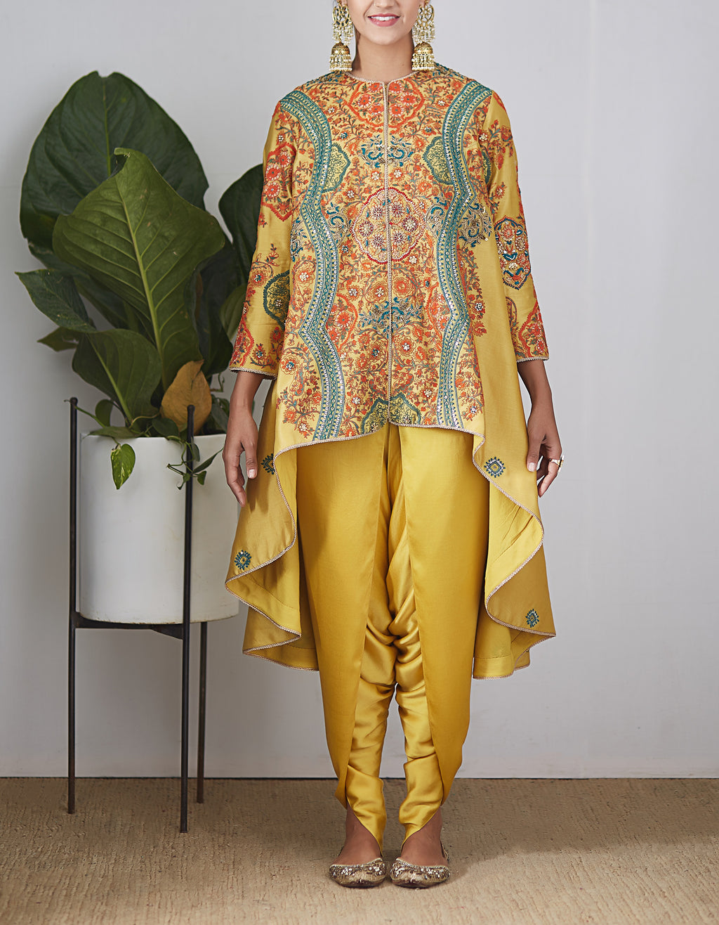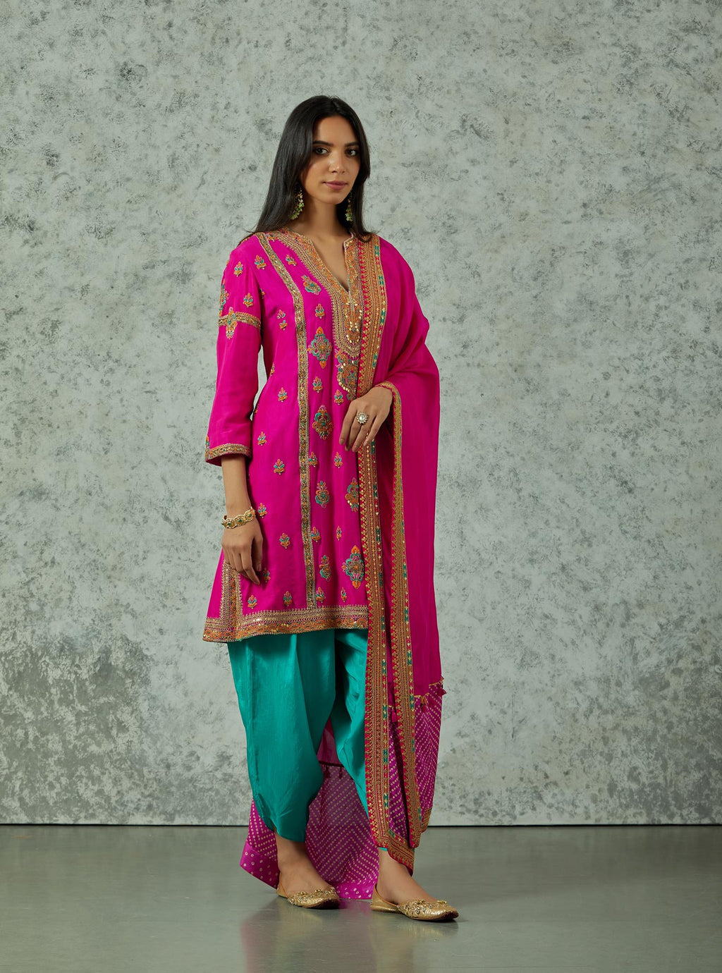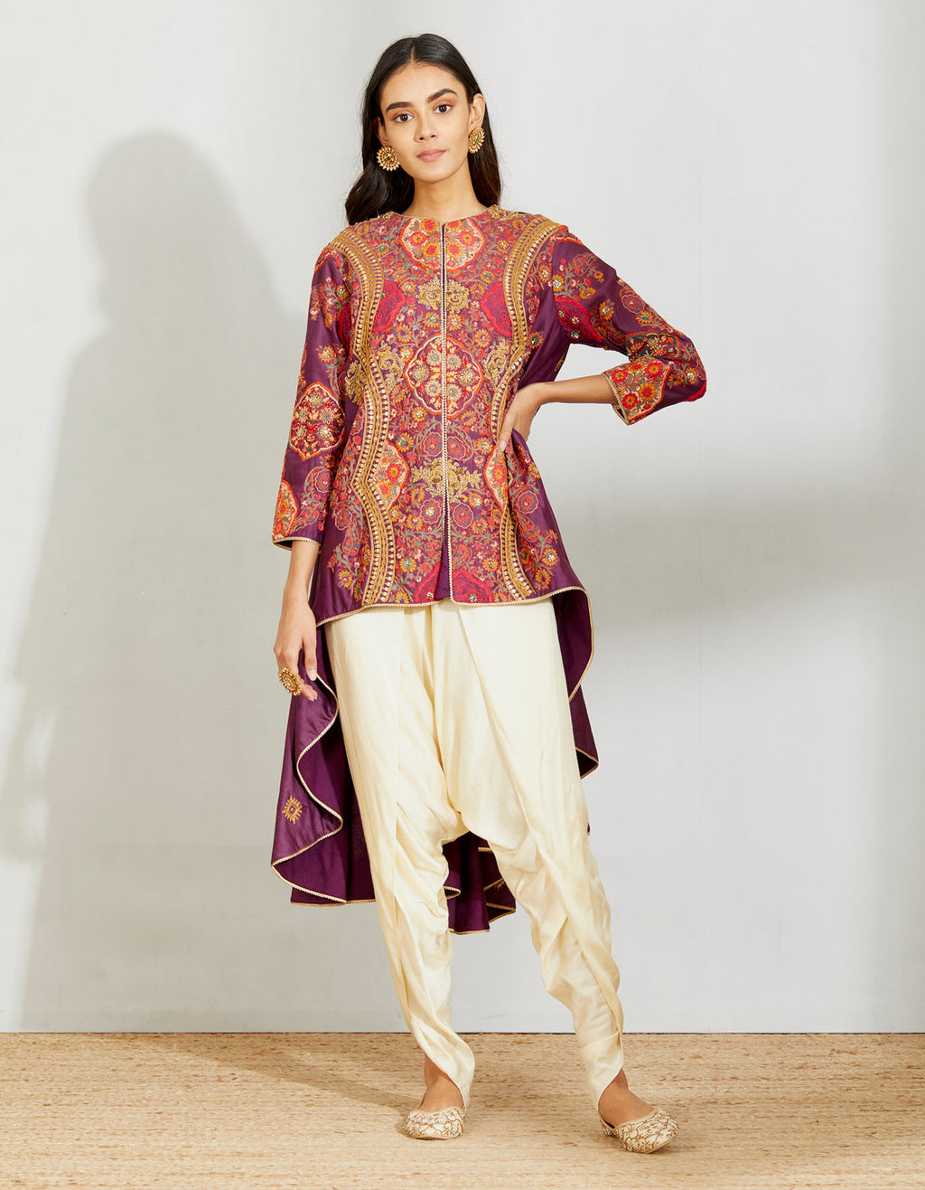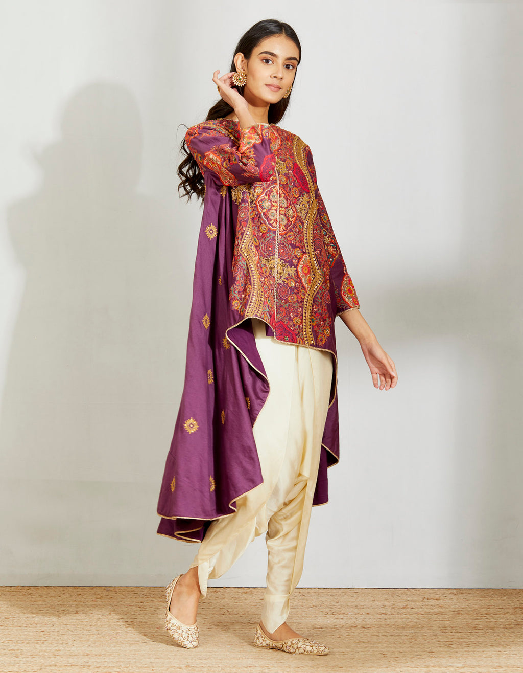 Rani Pink Silk Highlow Cape With Dhoti Set