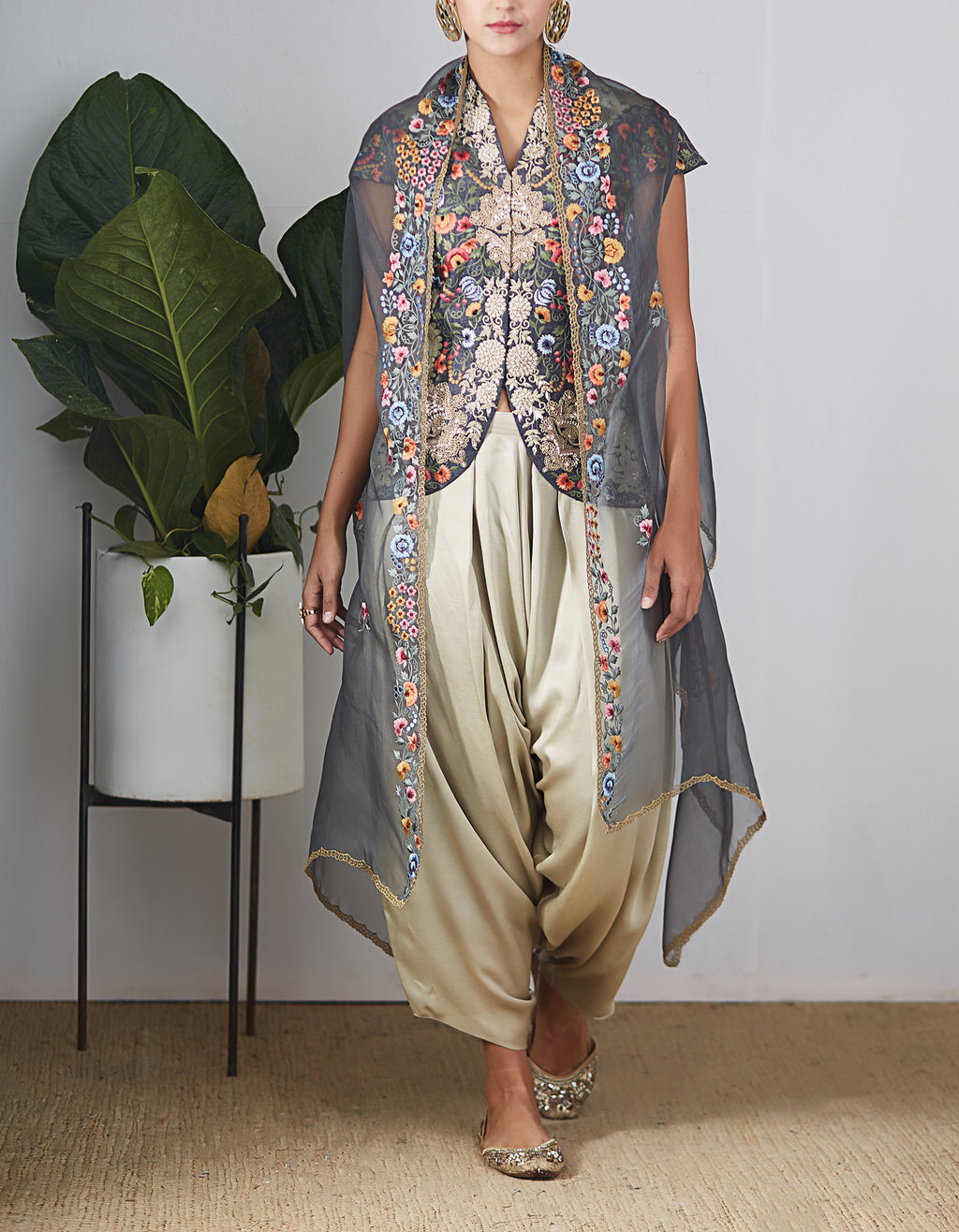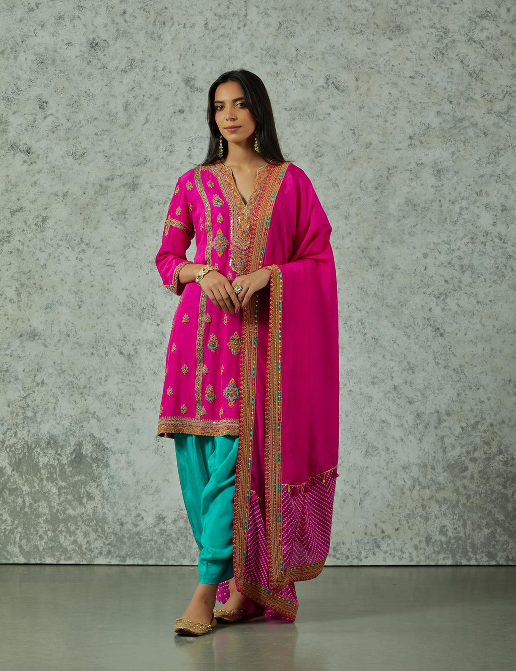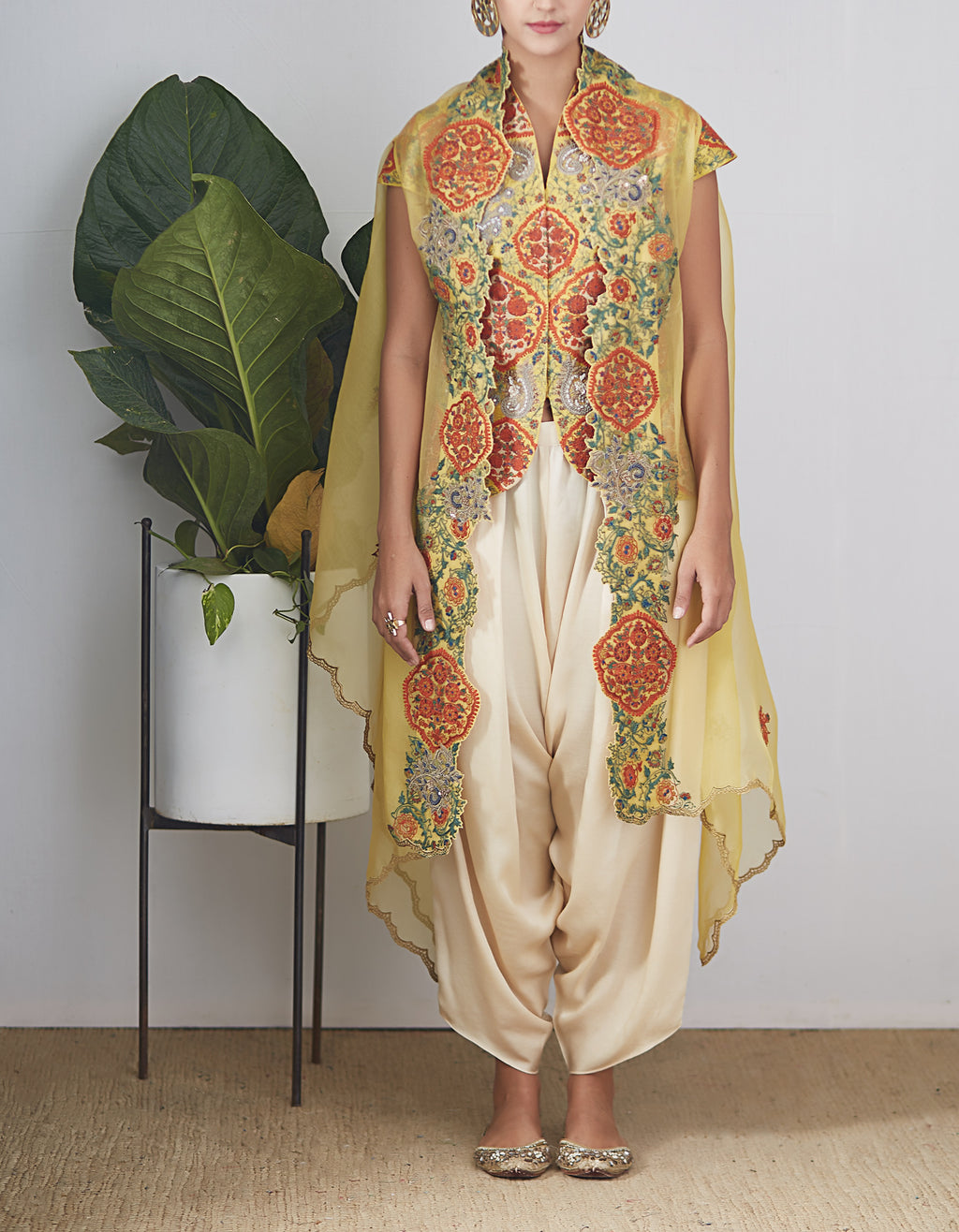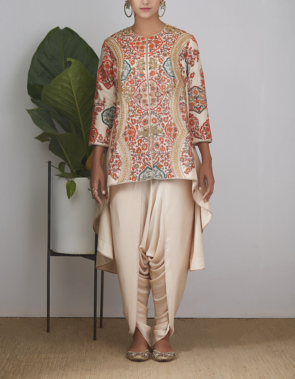 Rani Pink Silk Highlow Cape With Dhoti Set