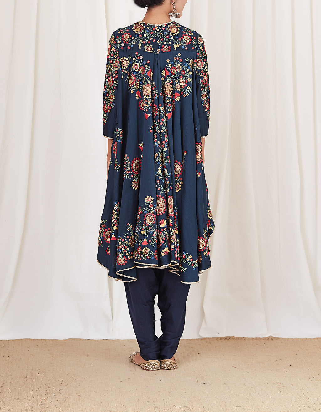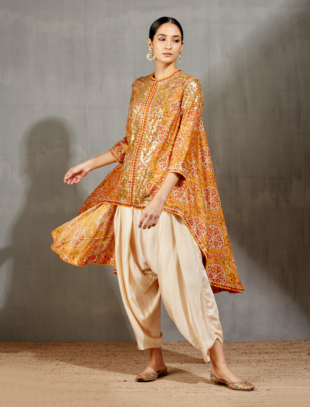 Ivory Yoke Embroidered Tunic with Printed Tulip Pants