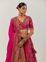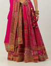 Magenta and Red Brocade Multi Pannel Lehenga With Blouse And Dupatta