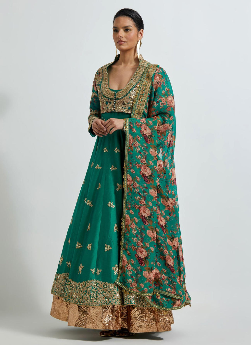 Meena Green Chota Gulab 4 Kali Kurta Set