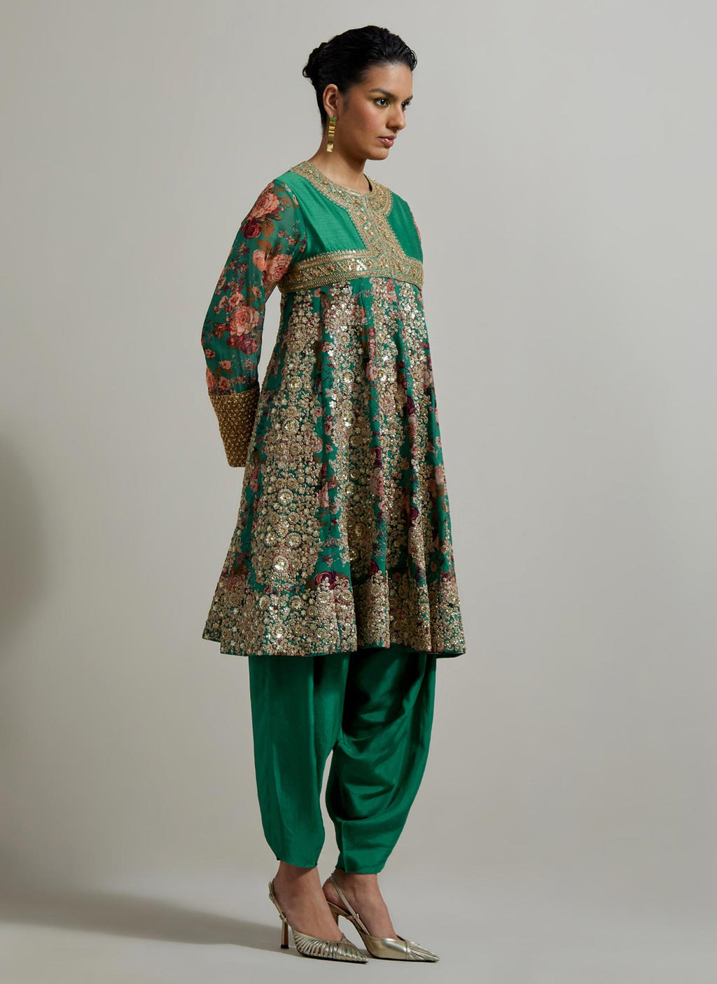 Meena Green Chota Gulab Pitta Kalidar Set