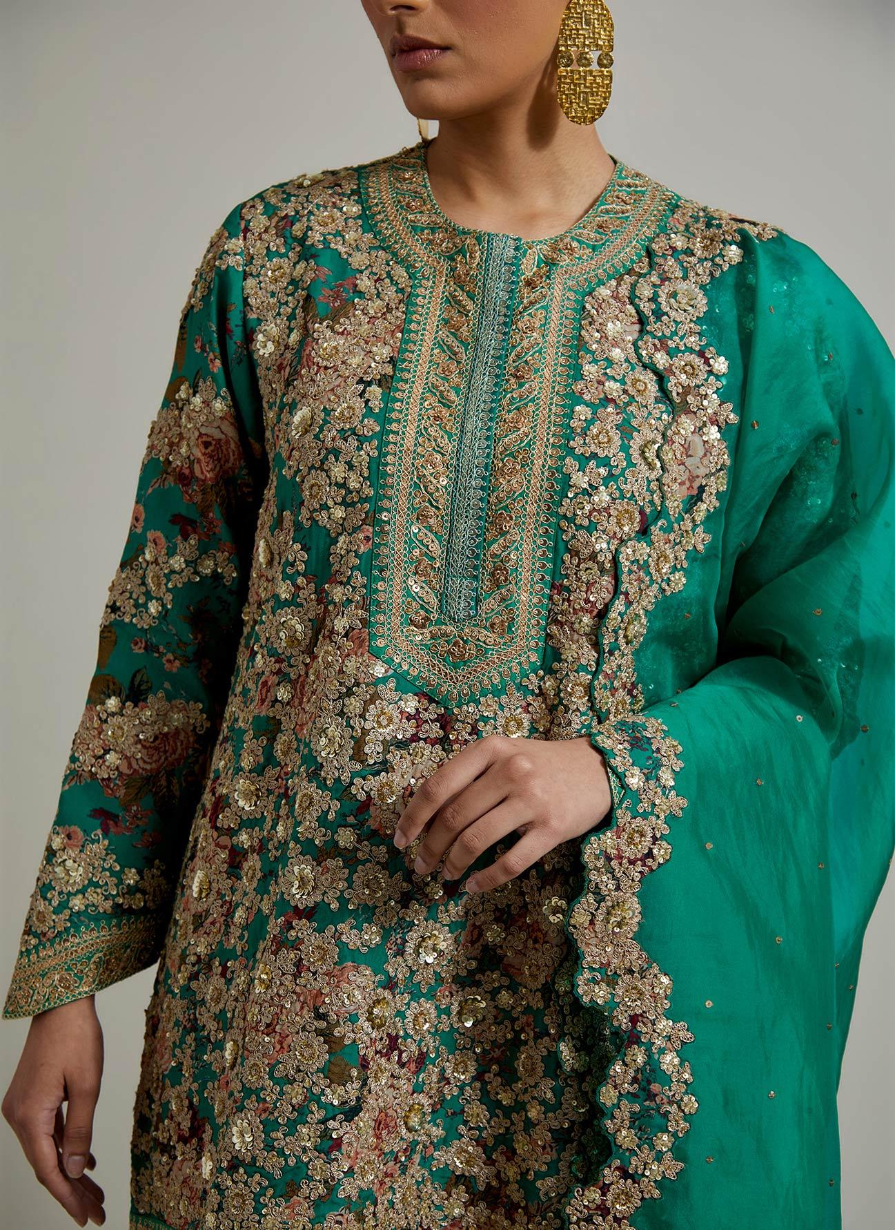 Meena Green Heavy Qawwali Kurta Set