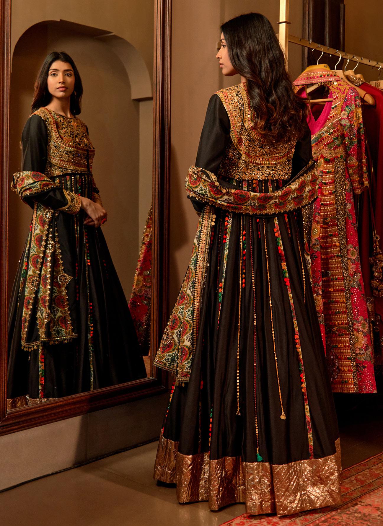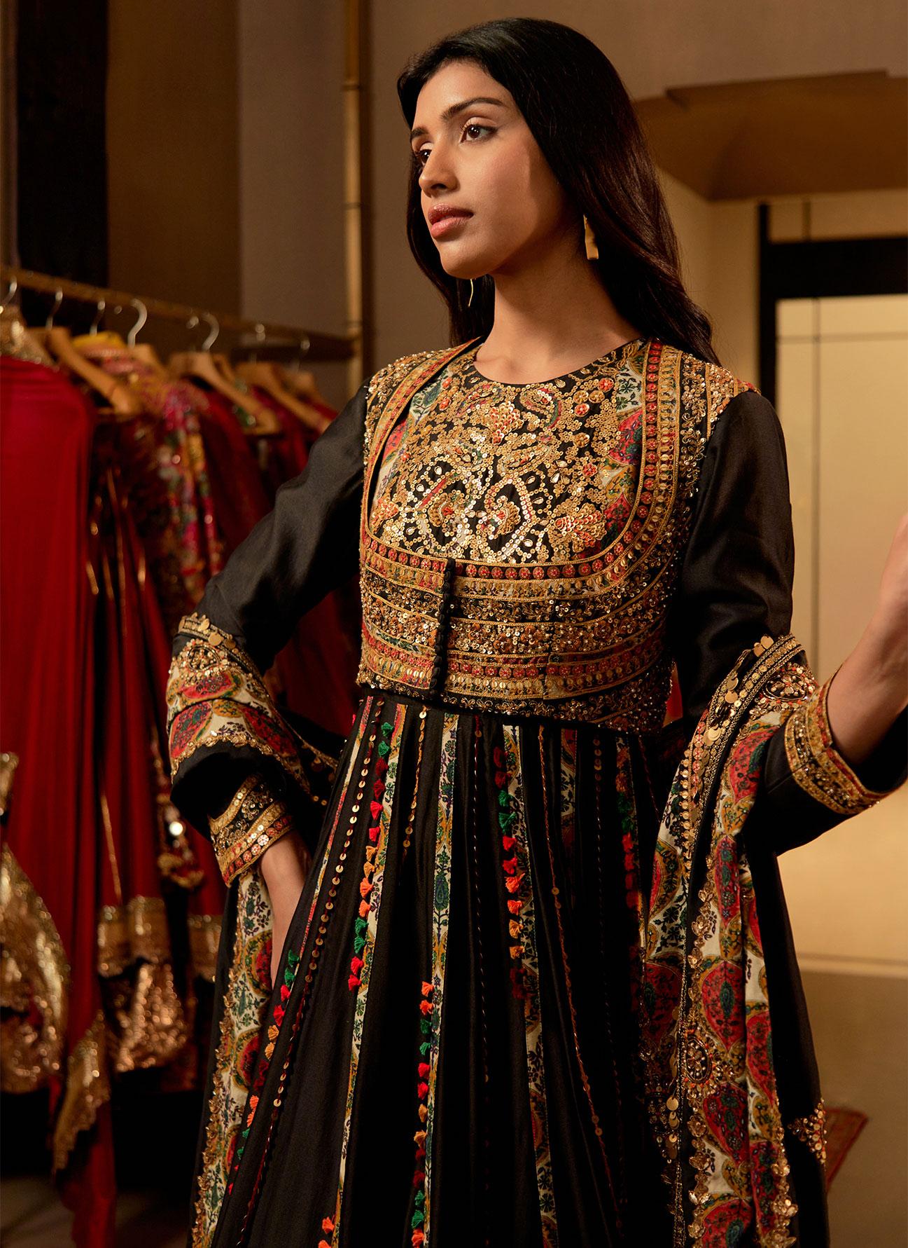 • Black Tushina Short Jacket Anarkali Set