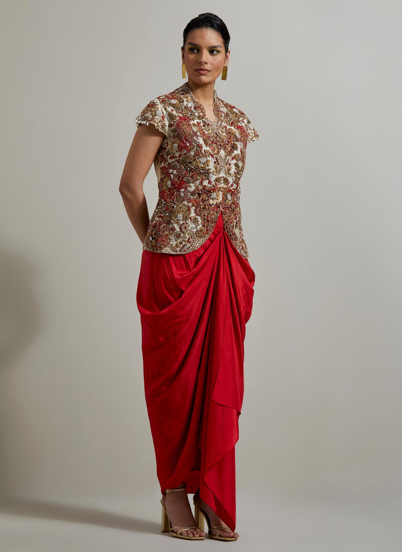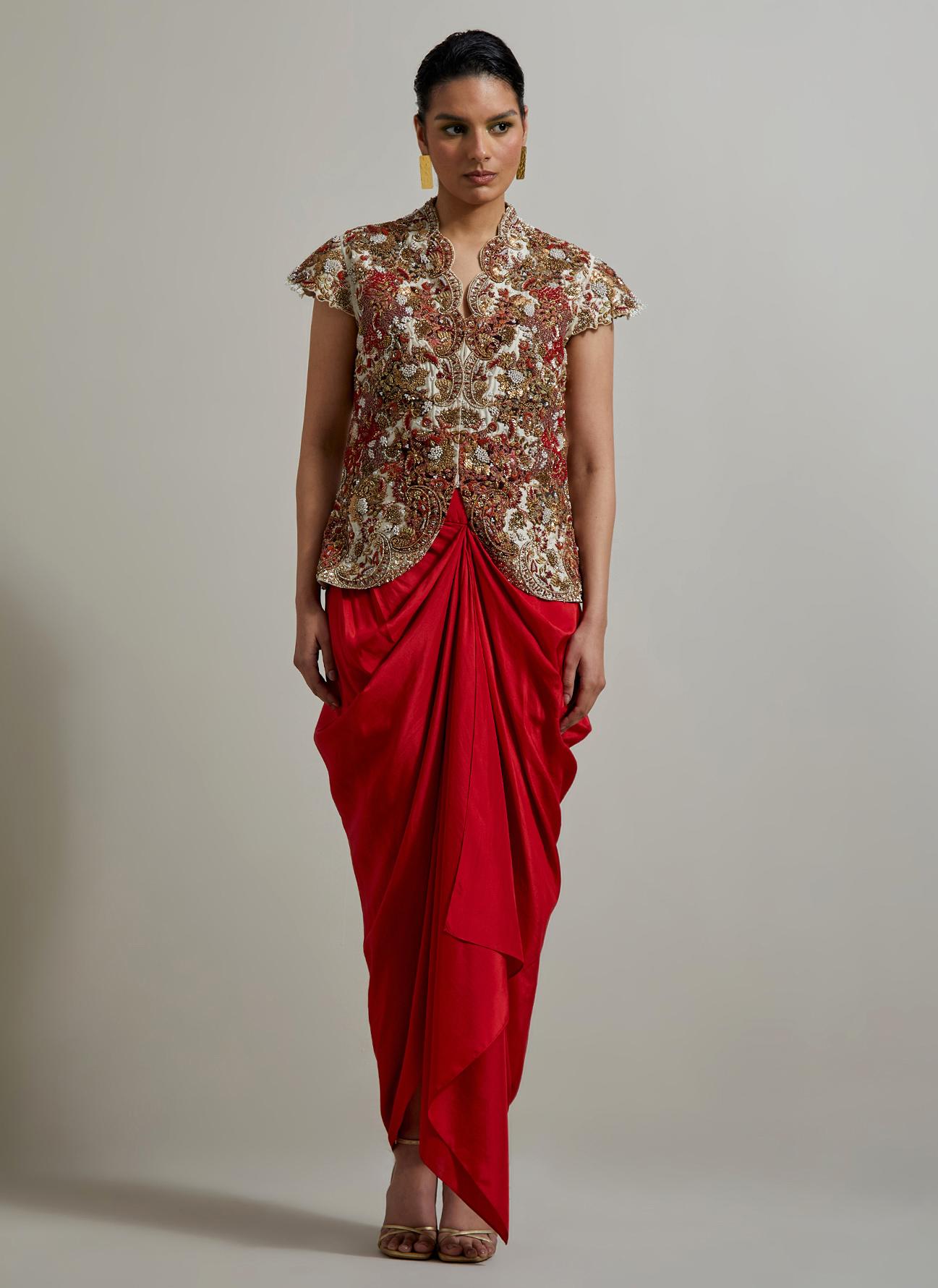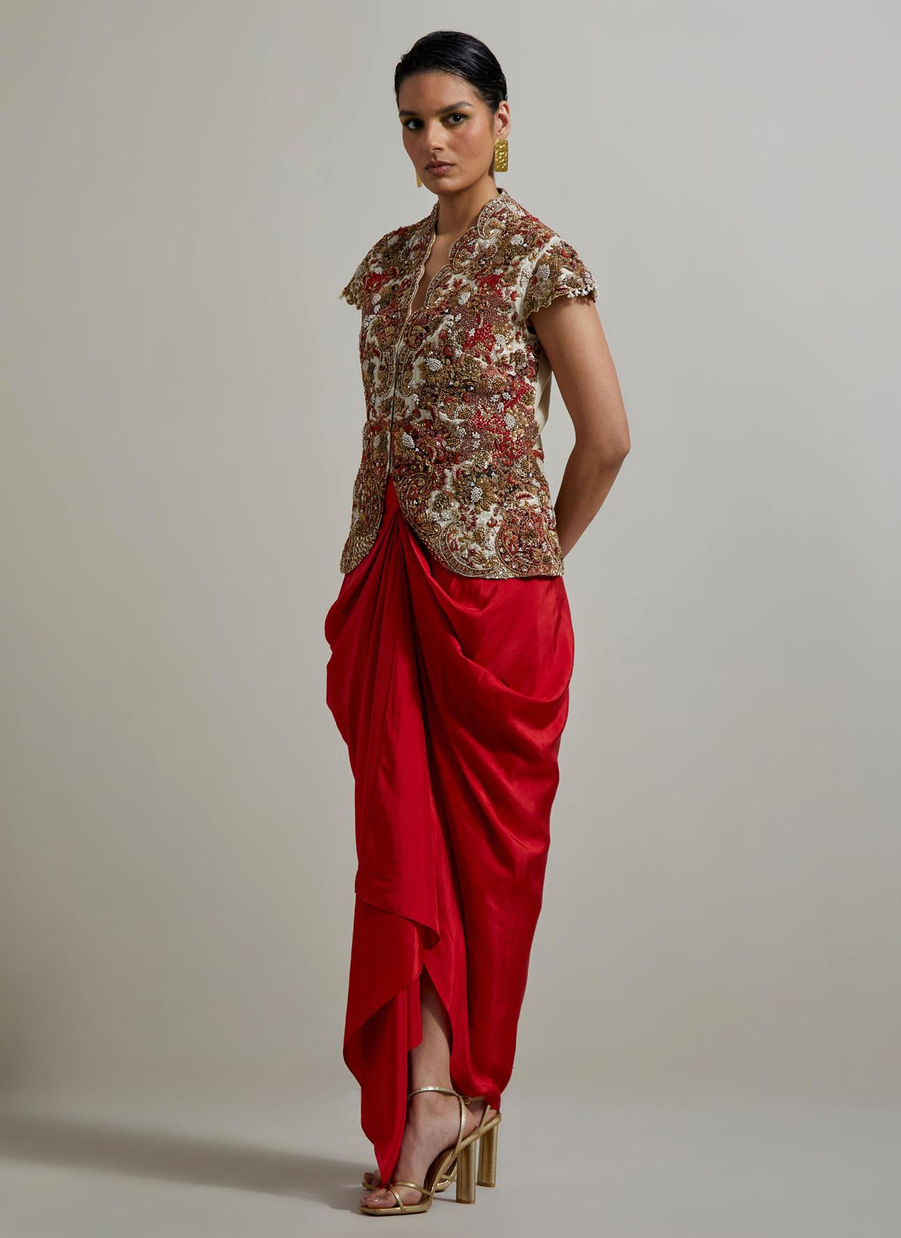 Ivory Red Raya Jacket Set