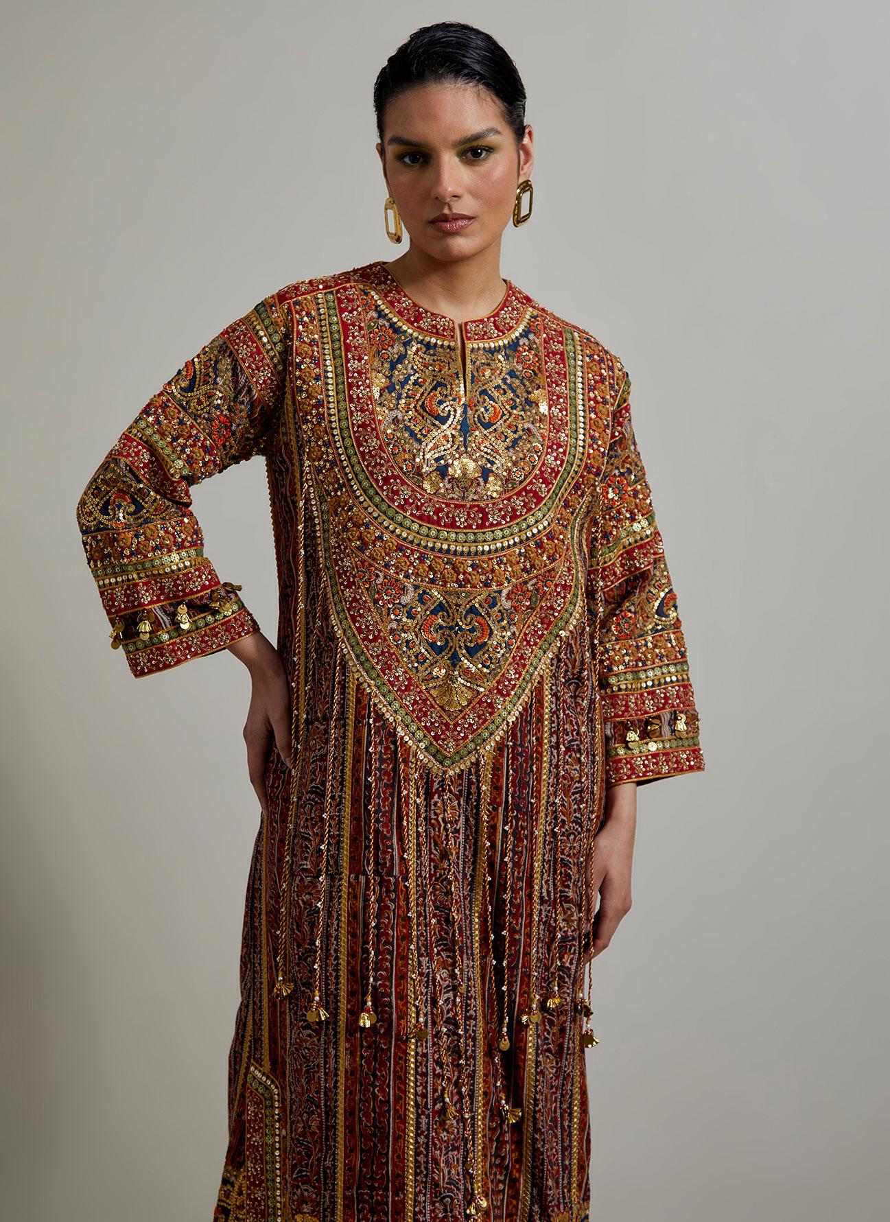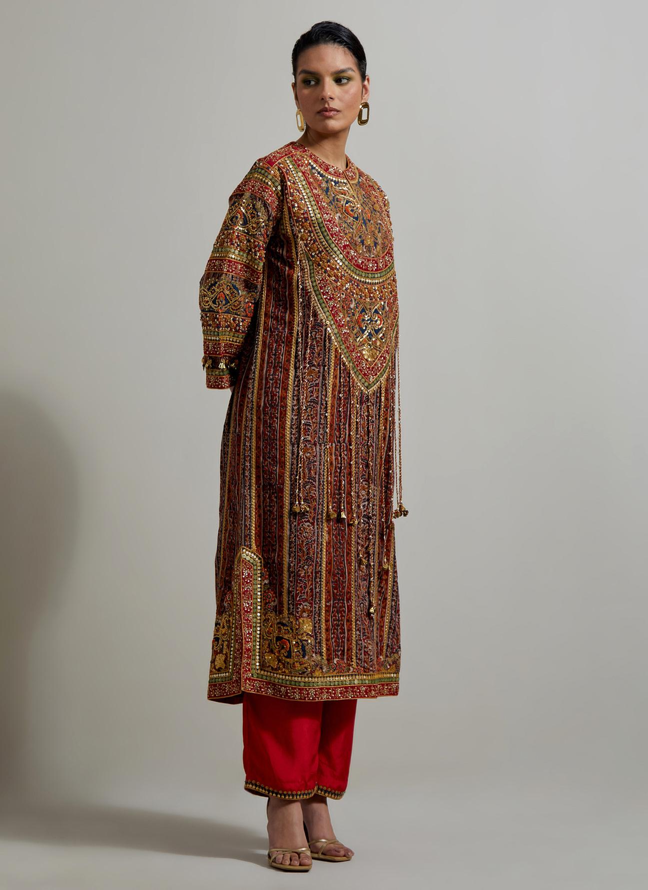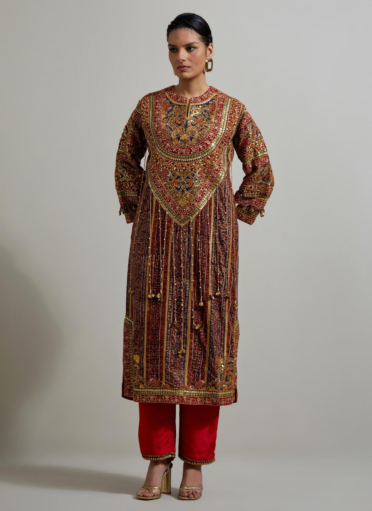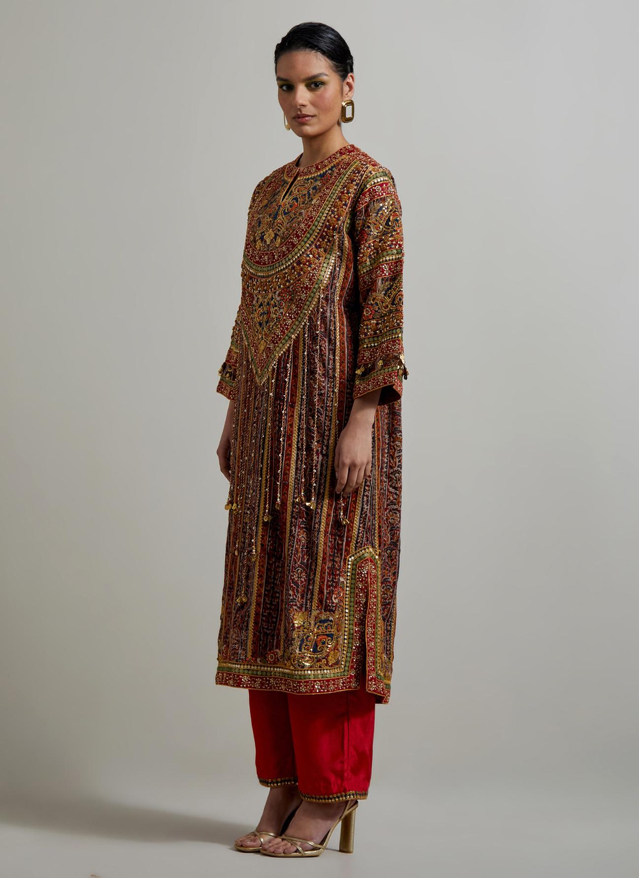 • Multi Zeba Ajrakh Stripe Kurta Set