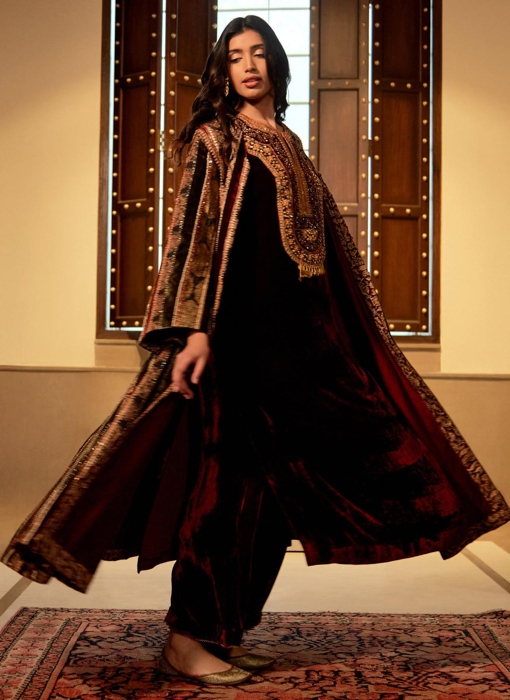 Olive & Maroon Short 4 Kali Kurta Set