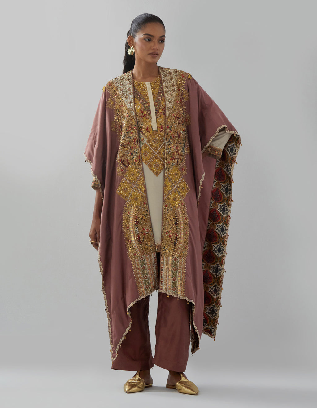 Ghee and Pink Kurta Set with a Mustard Dupatta