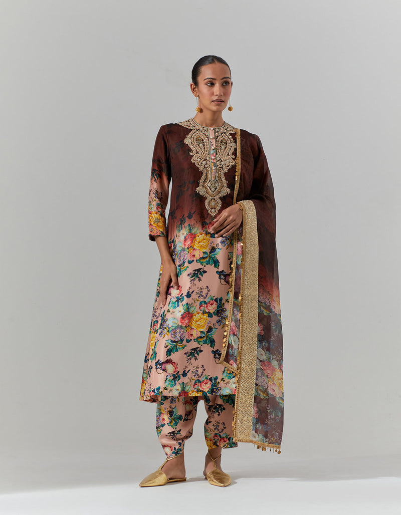 - Blush pink shaded floral gulab kurta with salwar and dupatta set