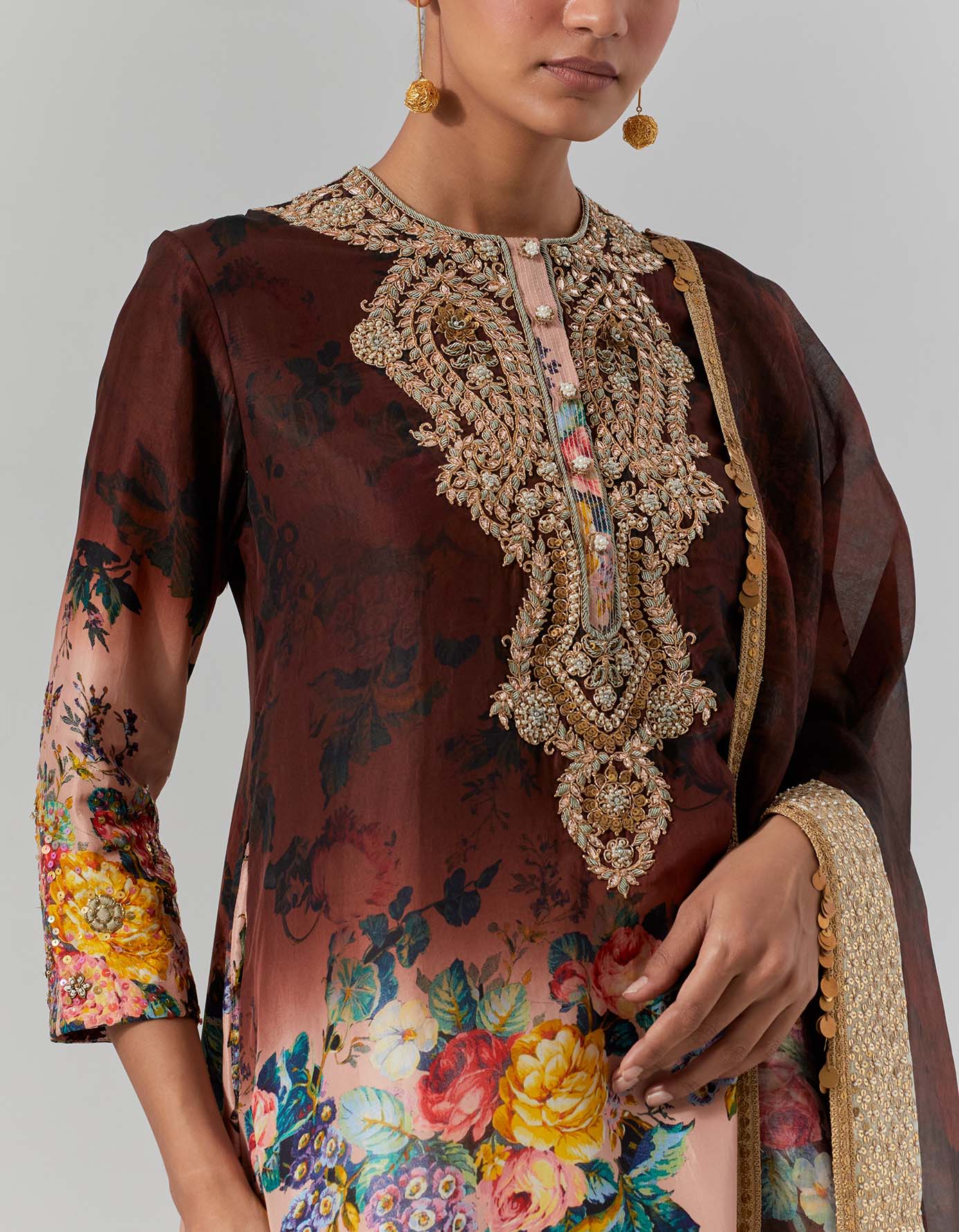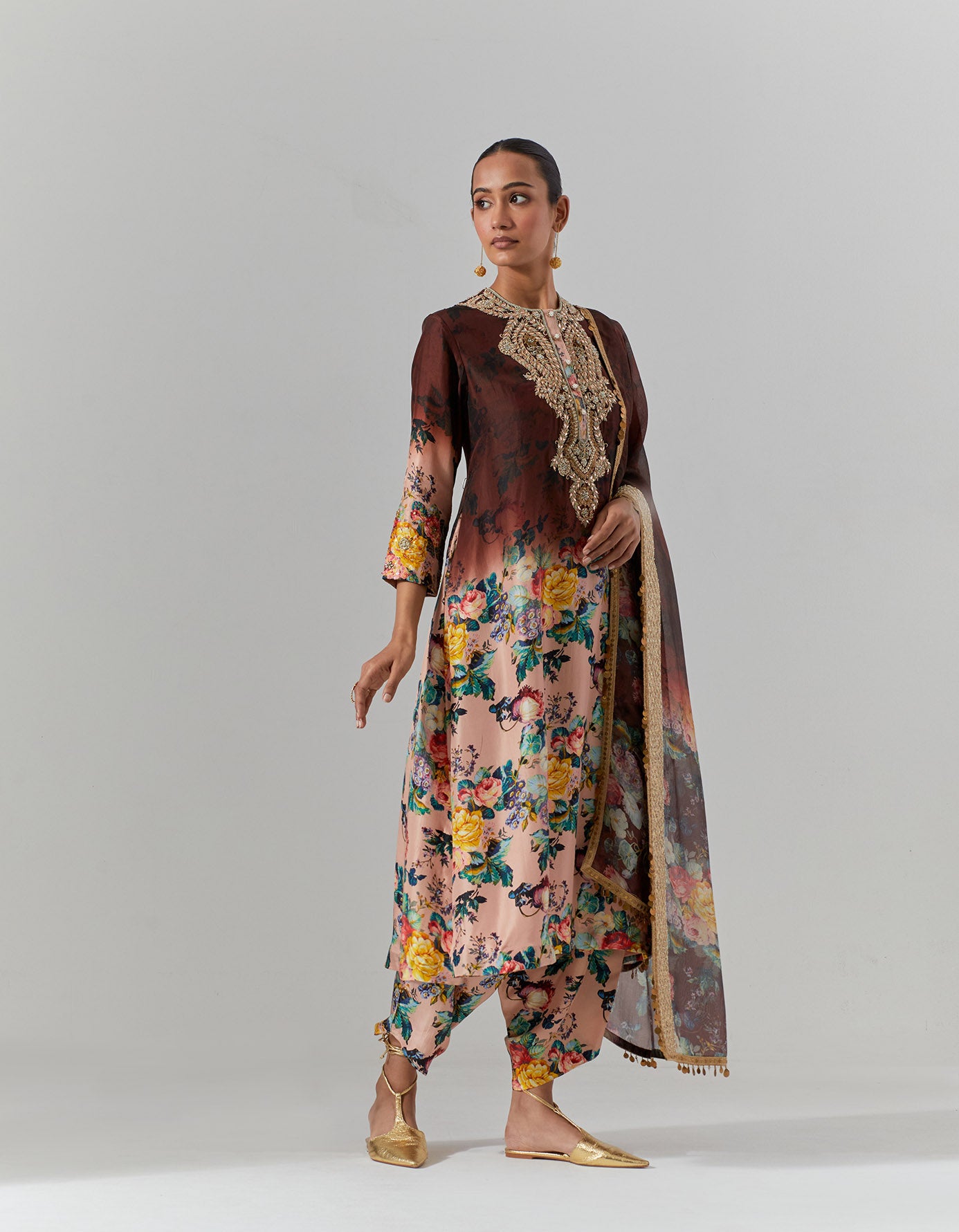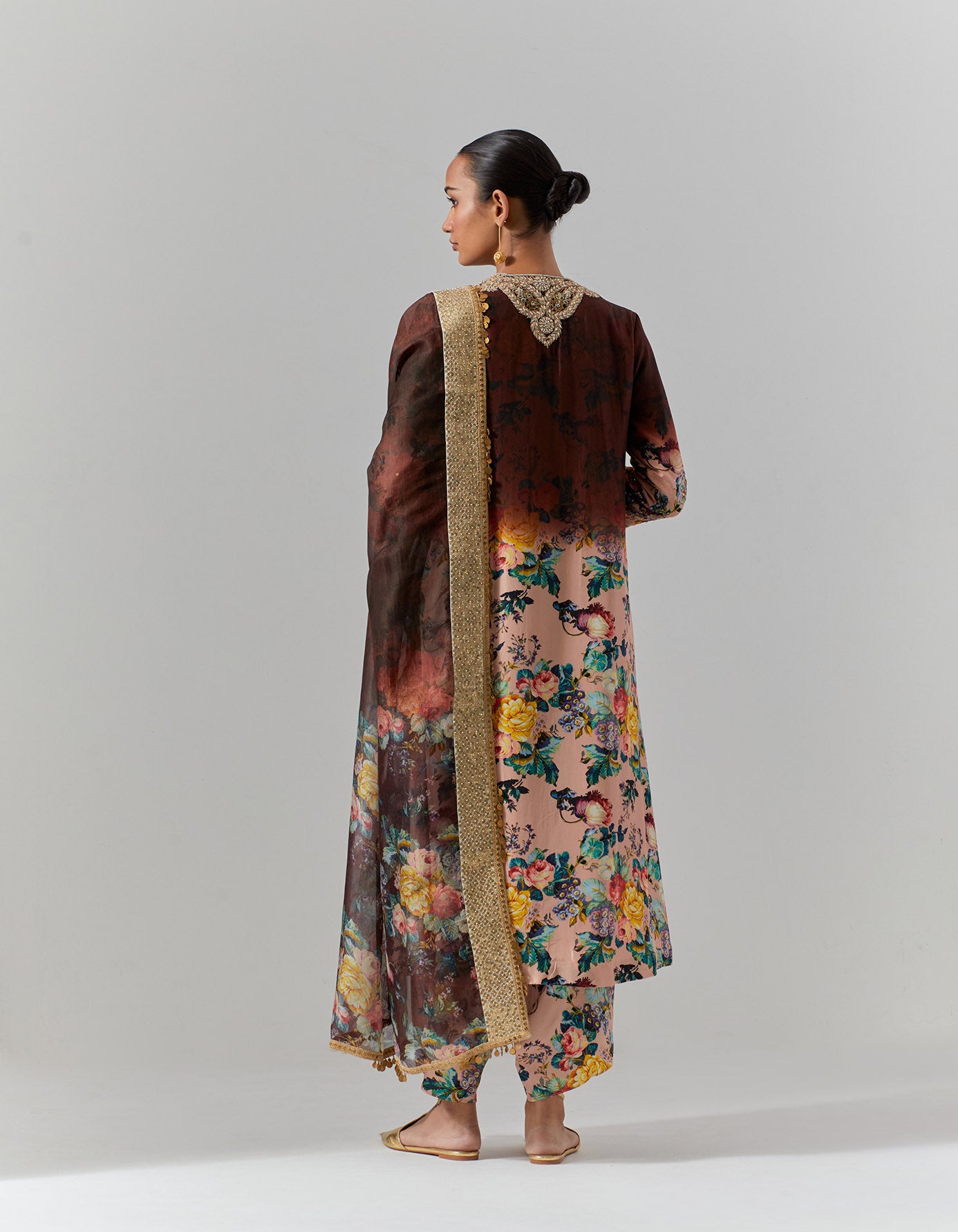 Blush Pink Shaded Floral Gulab Kurta With Salwar And Dupatta Set