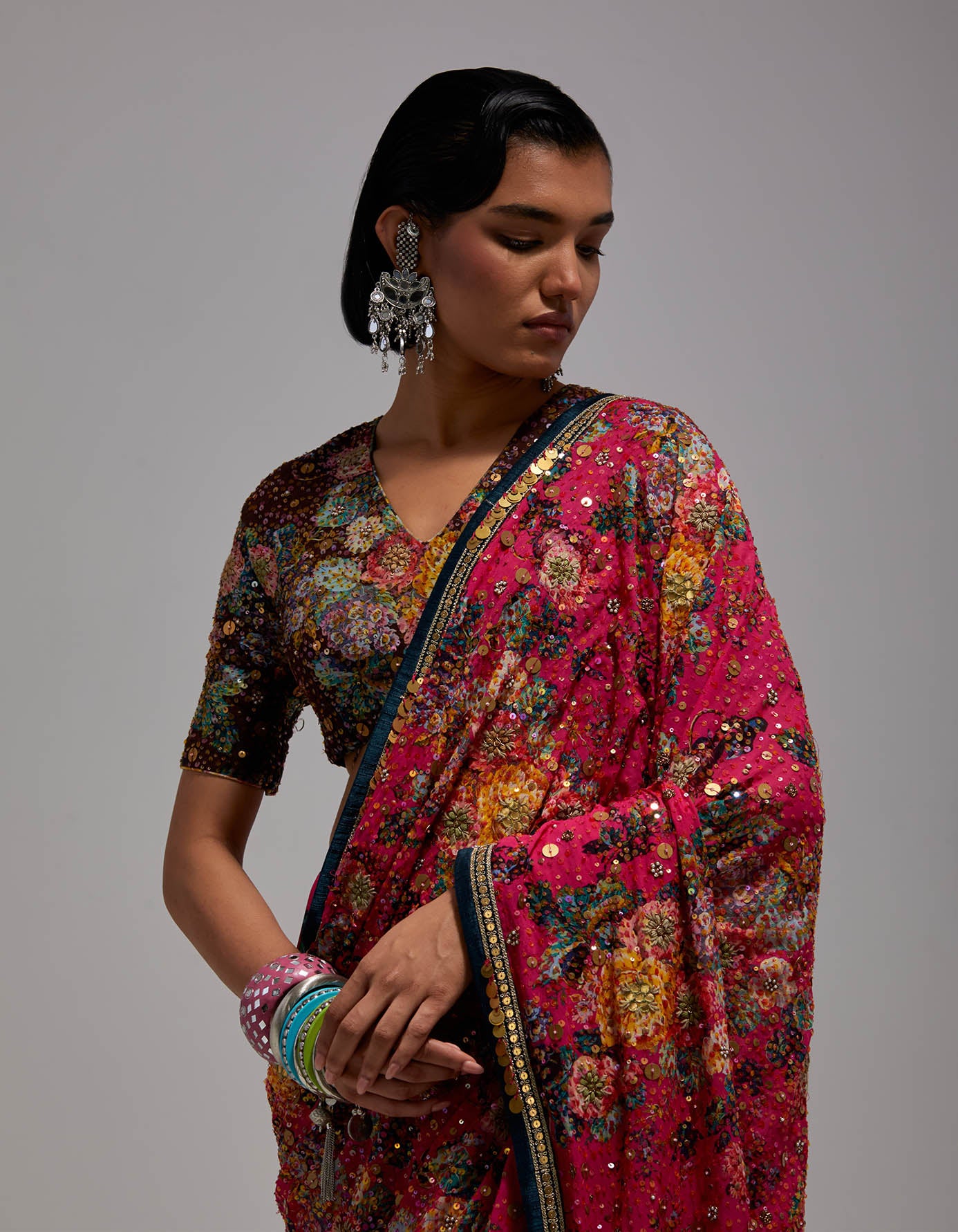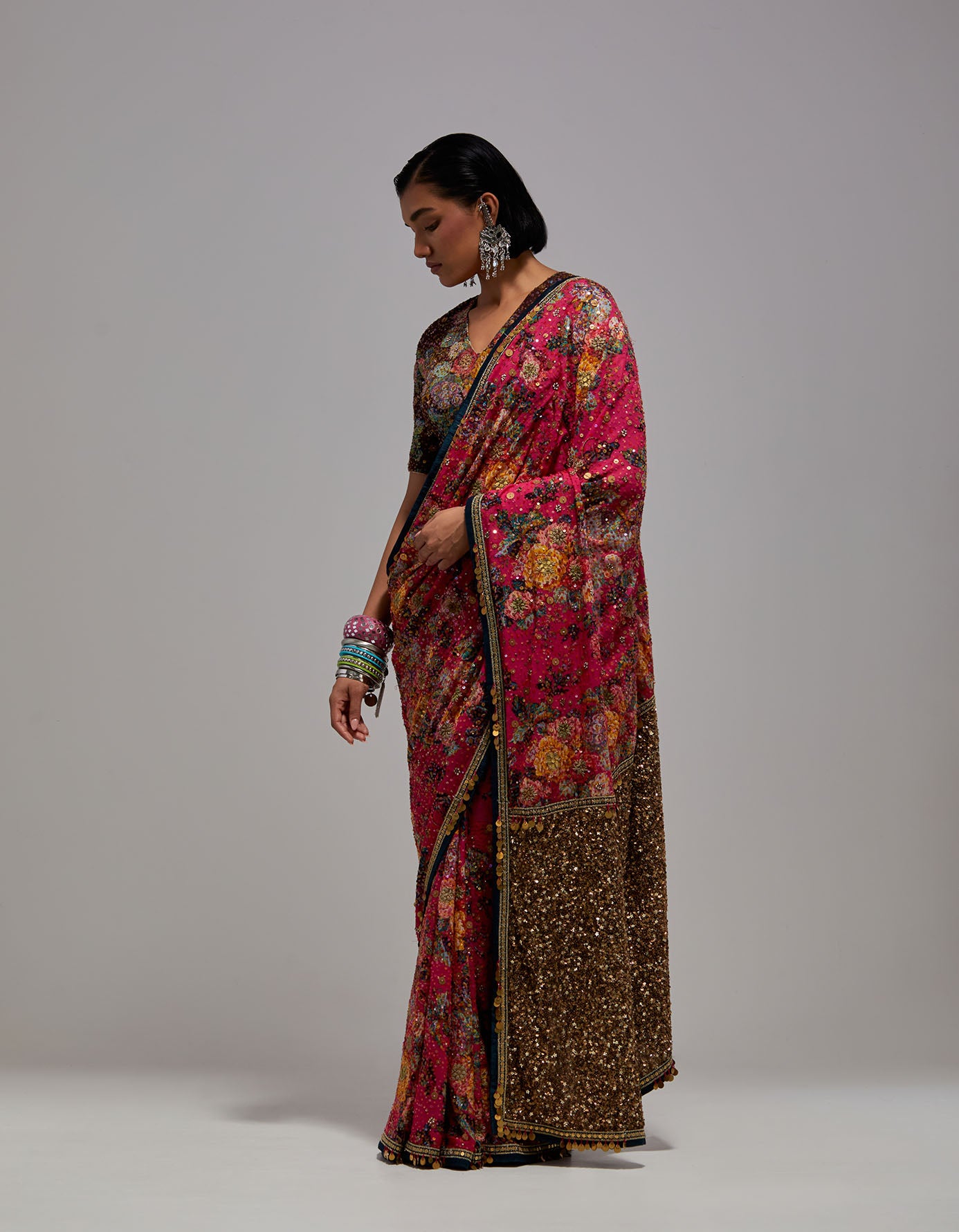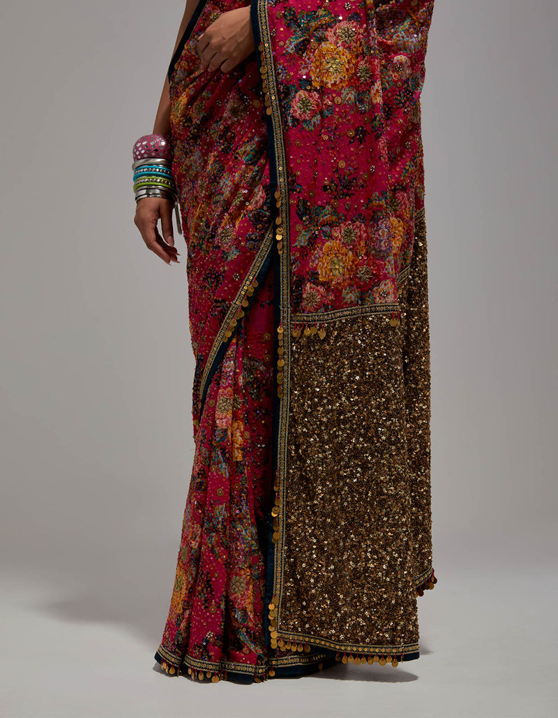 - Shimmi Shimmi Floral Printed Rani Saree with Blouse