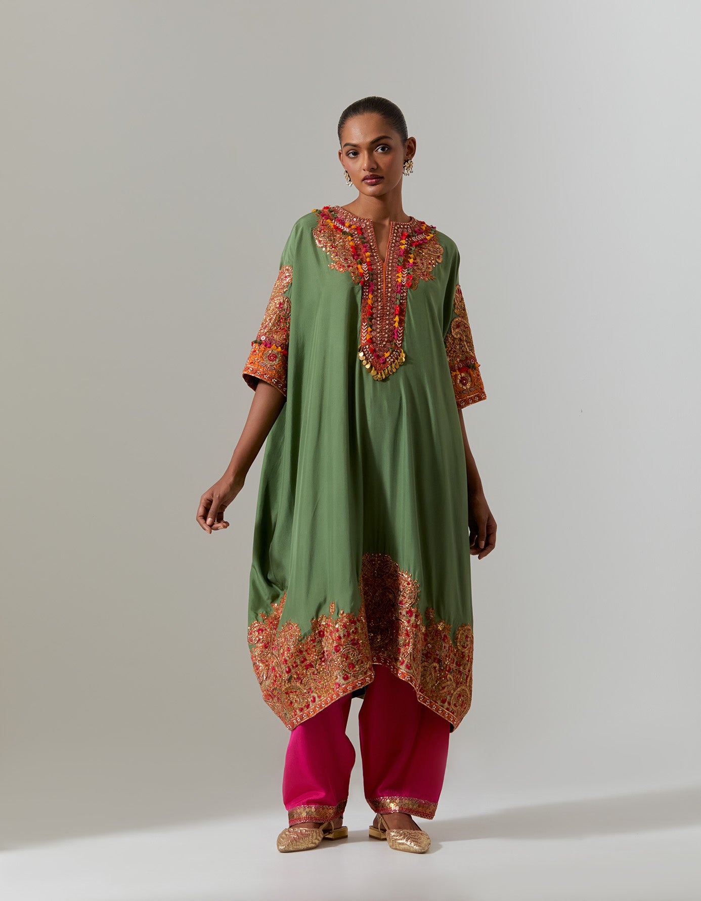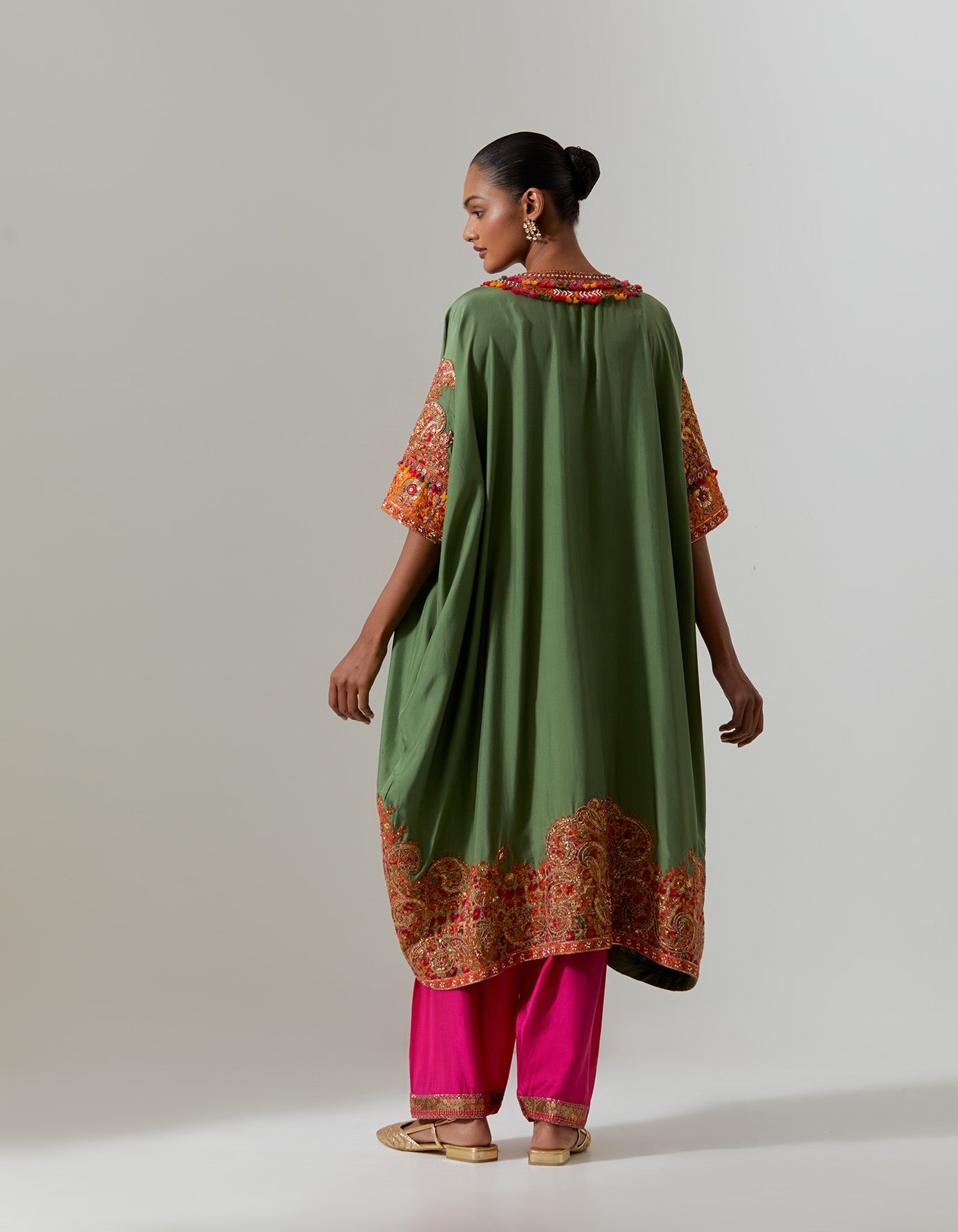 - Due to the handcrafted nature of this garment, the color of the base fabric and the embroidery threads may vary from piece to piece, adding a unique touch to each item