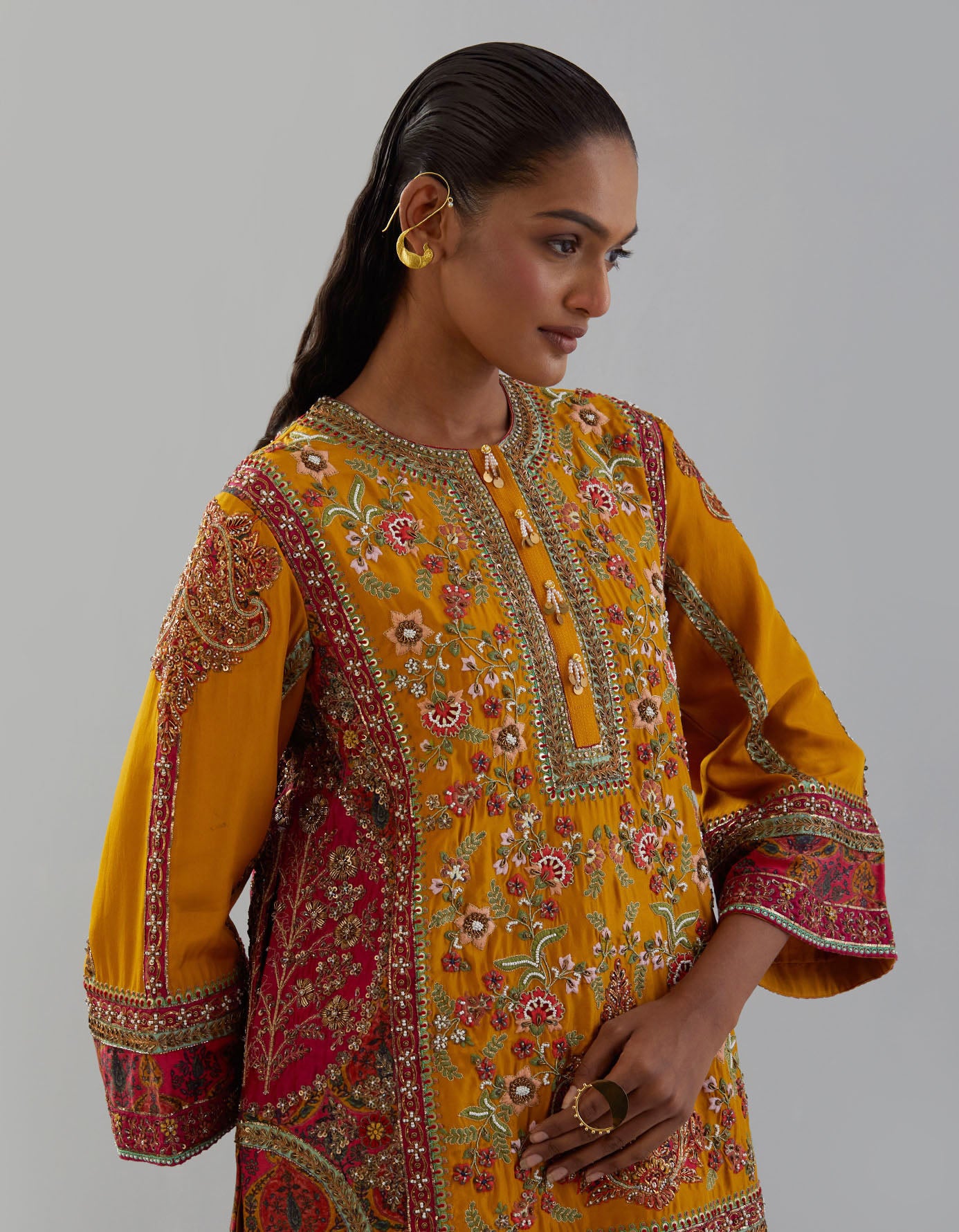 - Due to the handcrafted nature of this garment, the color of the base fabric and the embroidery threads may vary from piece to piece, adding a unique touch to each item