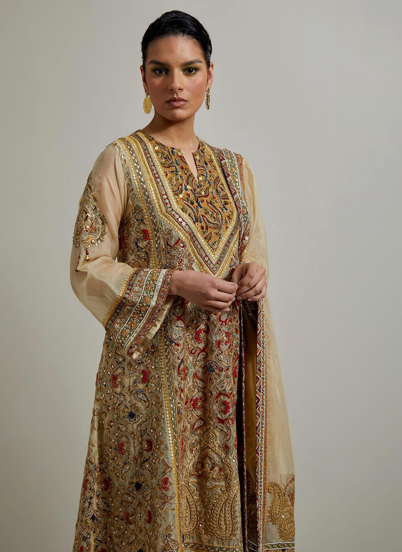 • Due to the handcrafted nature of this garment, the color of the base fabric and the embroidery threads may vary from piece to piece, adding a unique touch to each item