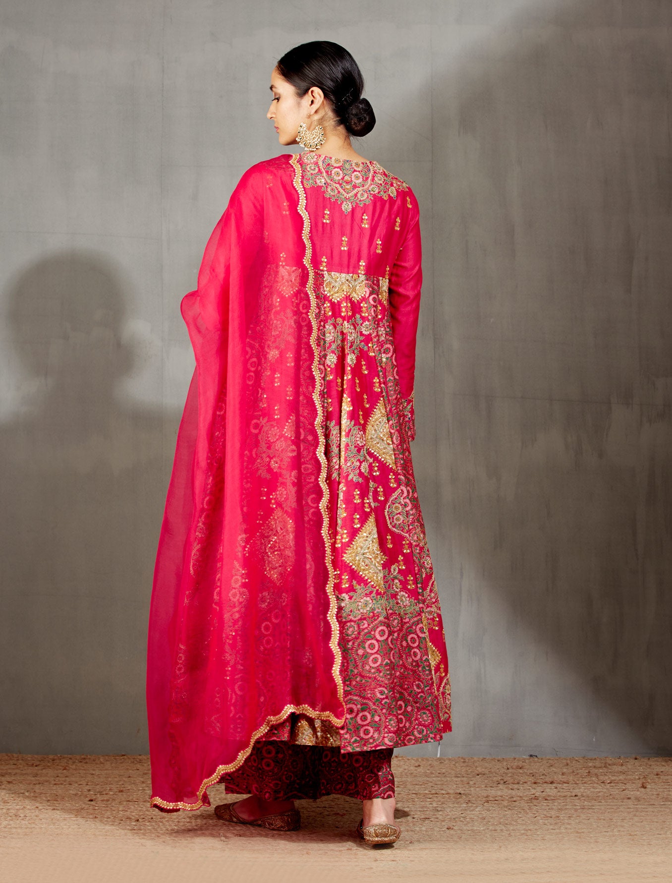 Magenta Kalidaar and Palazzo Set with Embroidery