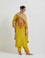 Mustard Kurta Set with Yoke Embroidery Paired with a Crinkled Tissue Dupatta