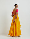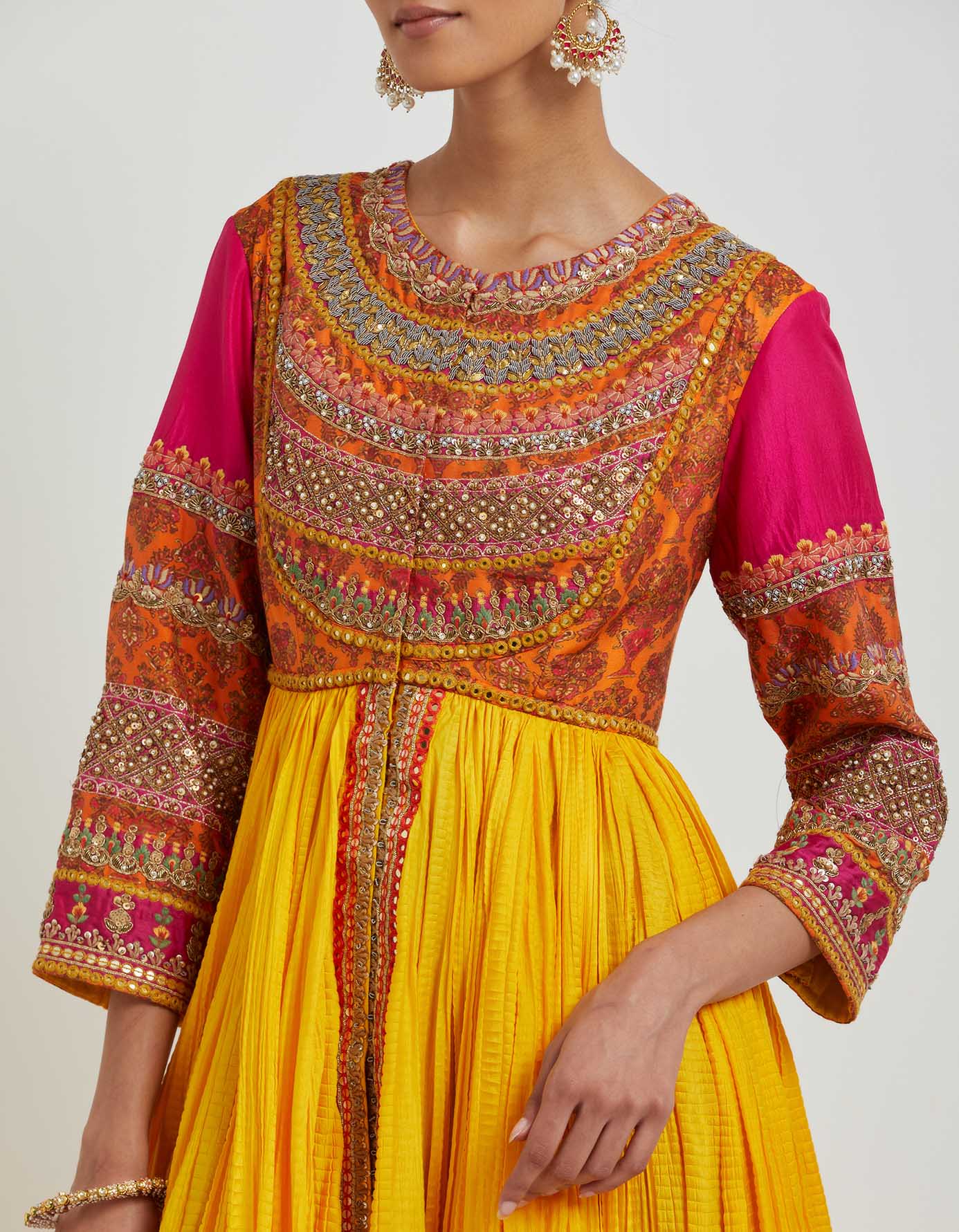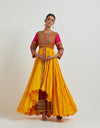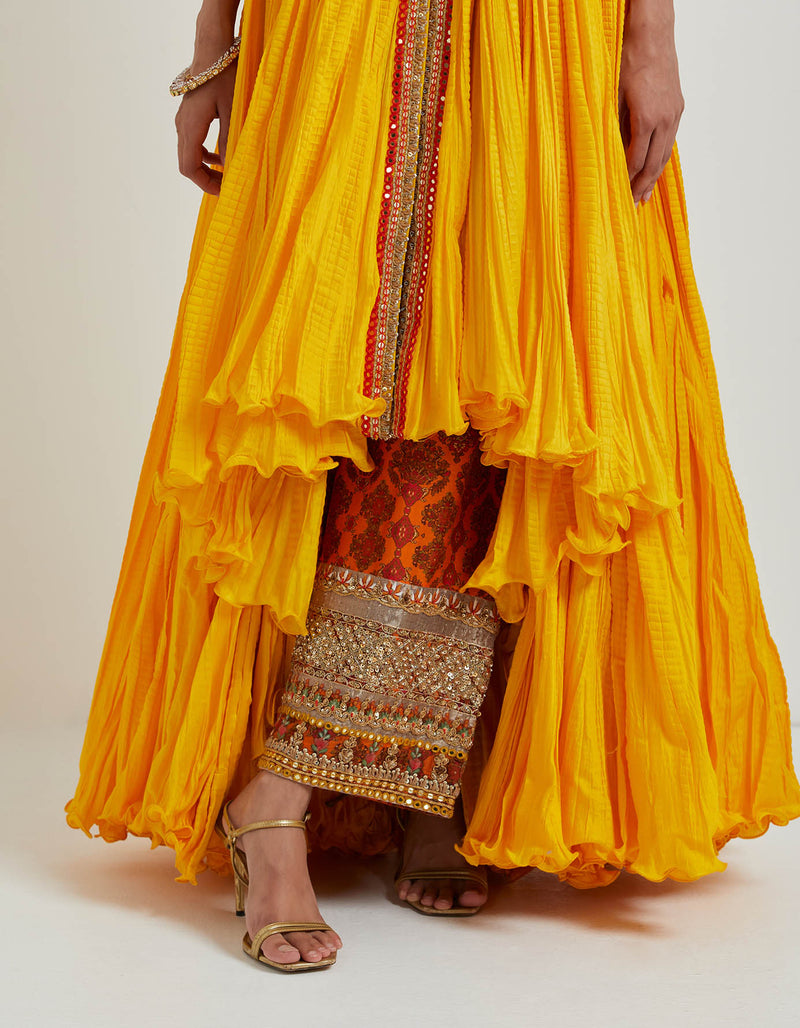 Yellow Crinkled High-Low Kalidar with Wide Sleeves