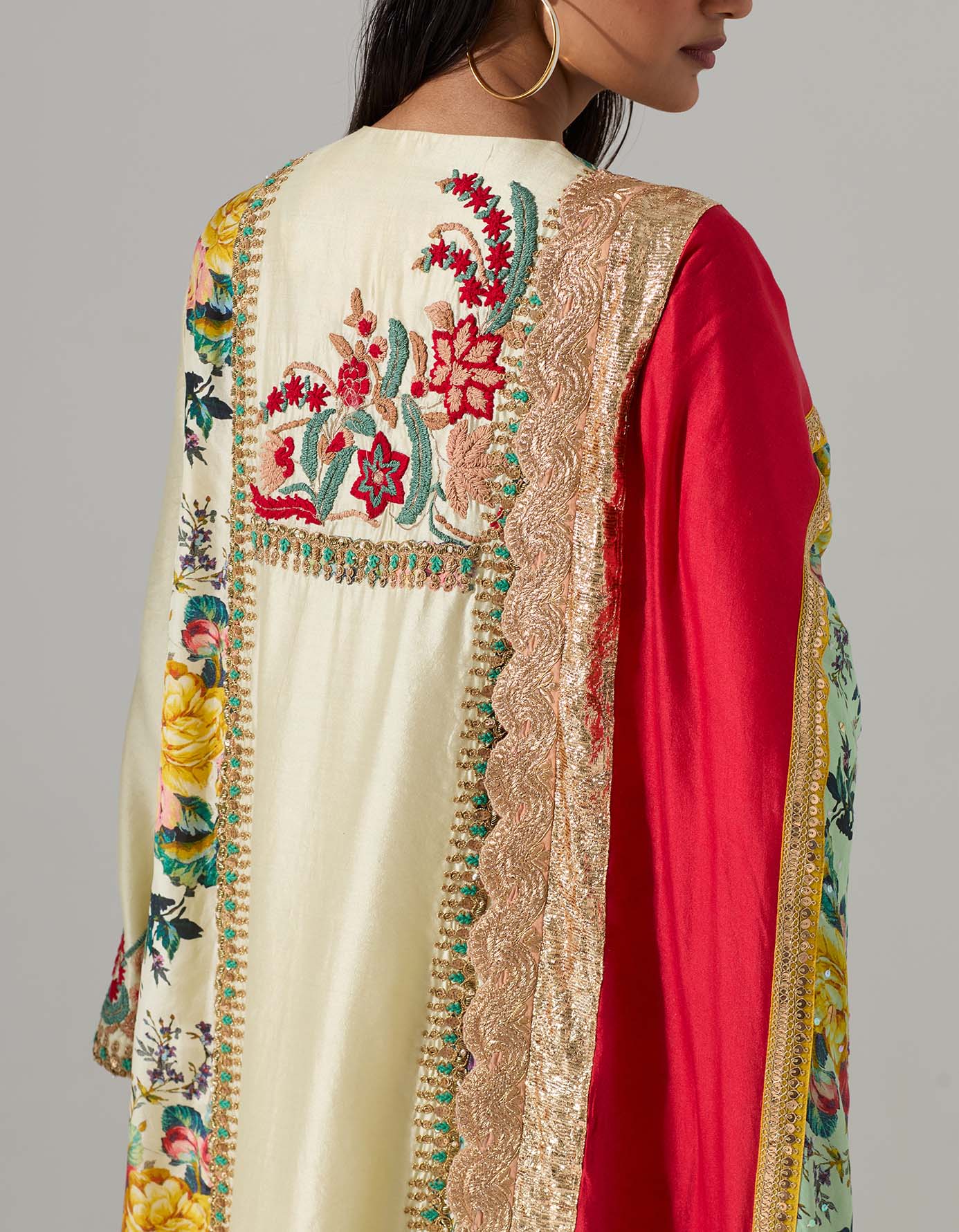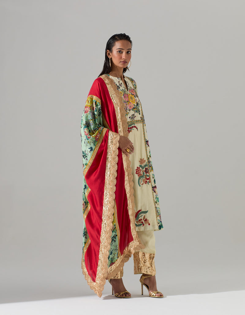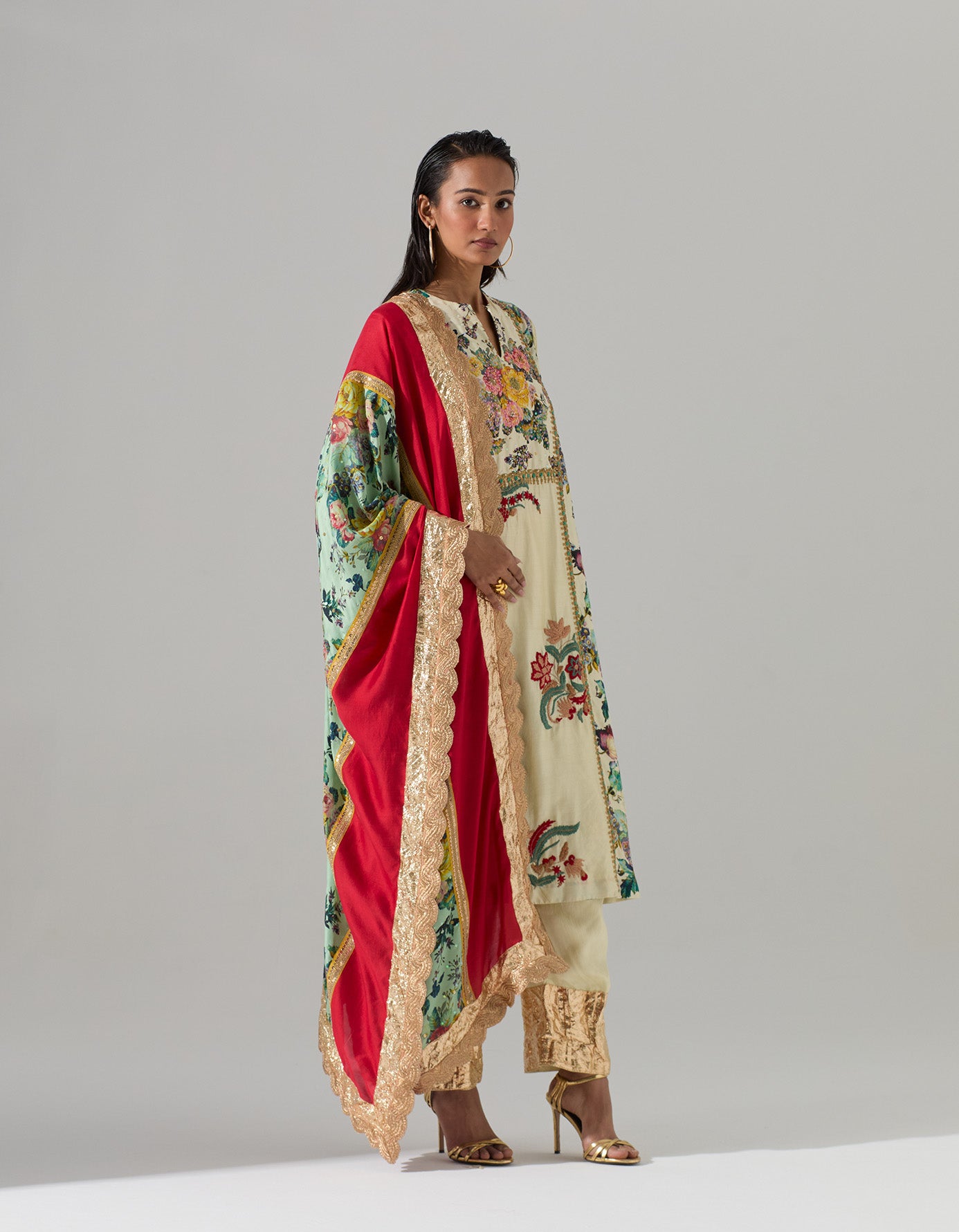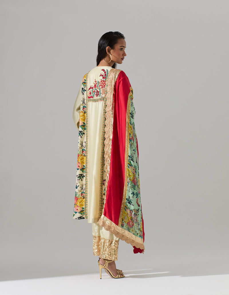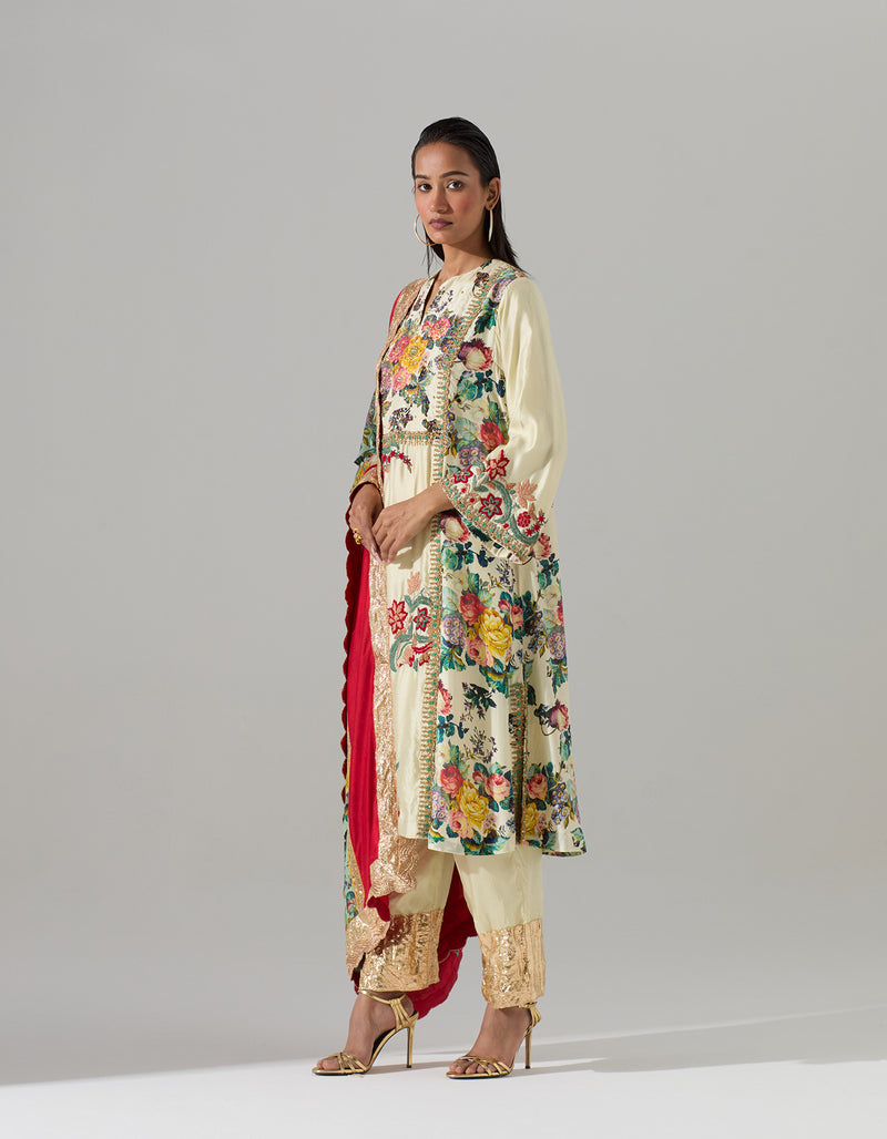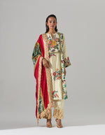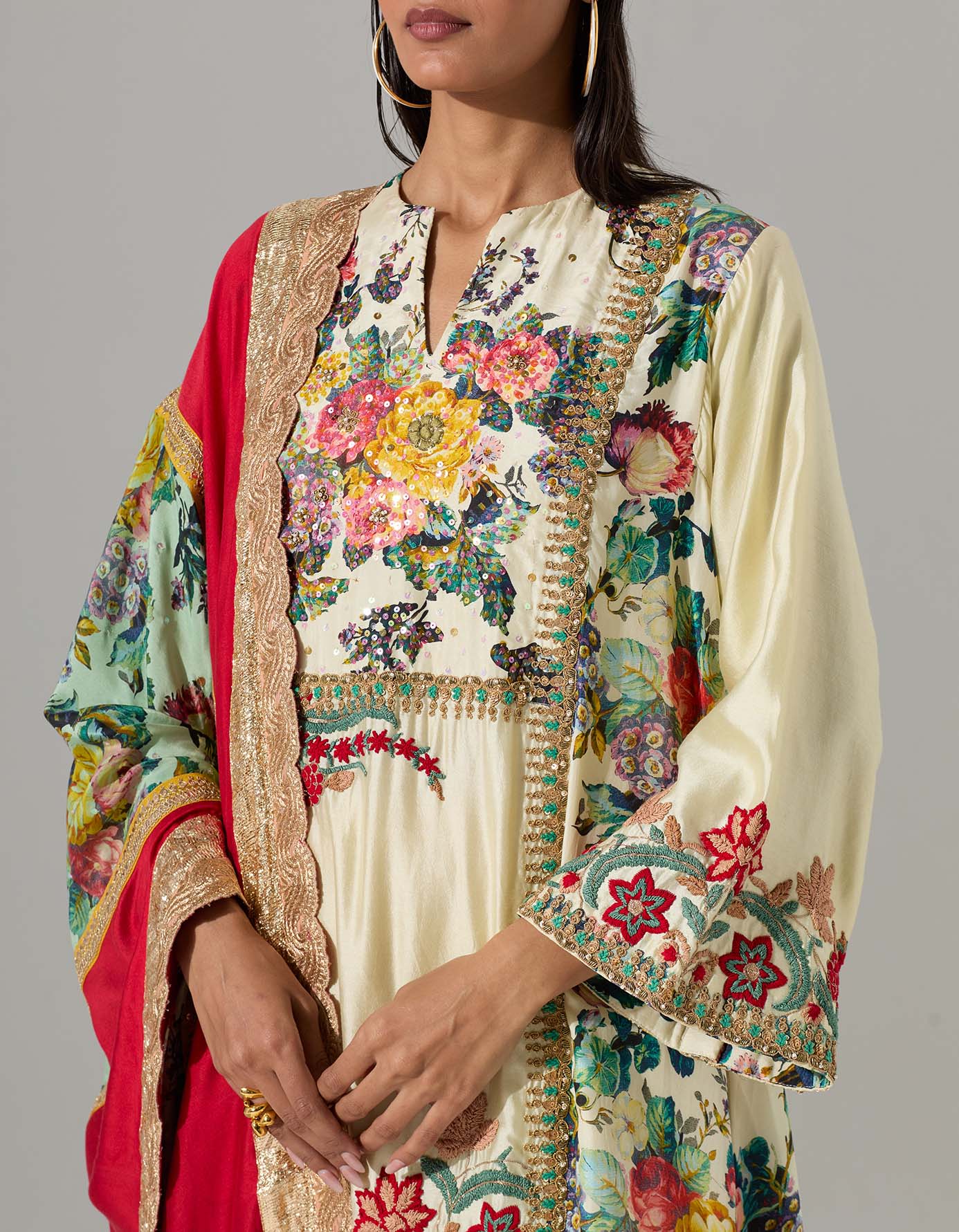 Ivory Digital Printed Kurta Set with a Panneled Dupatta