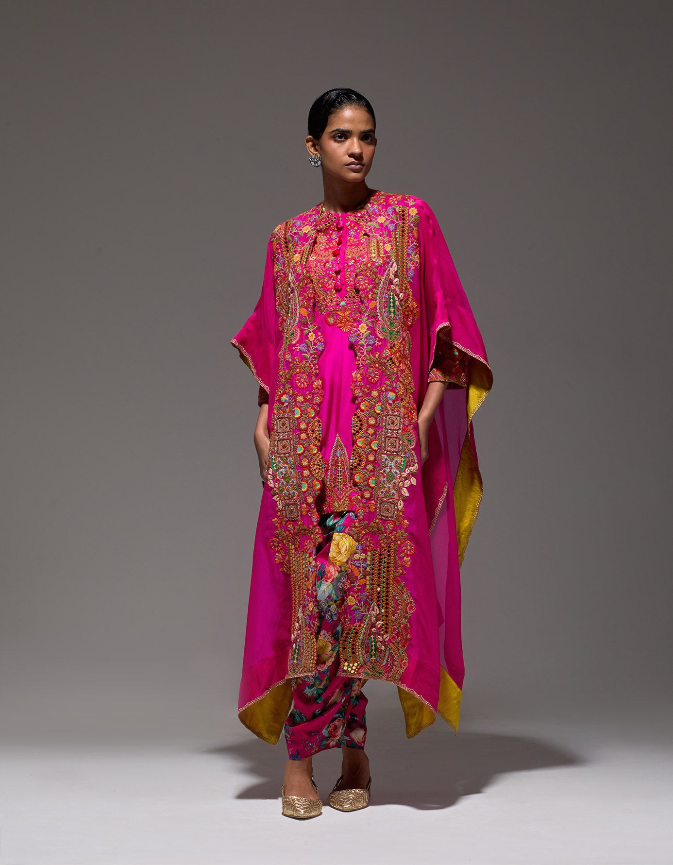 Magenta Rocket Kurta With Diya Cape And Ivery Pleat Salwar