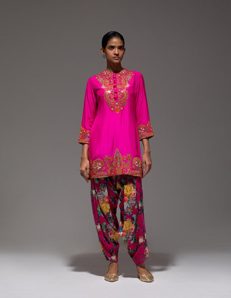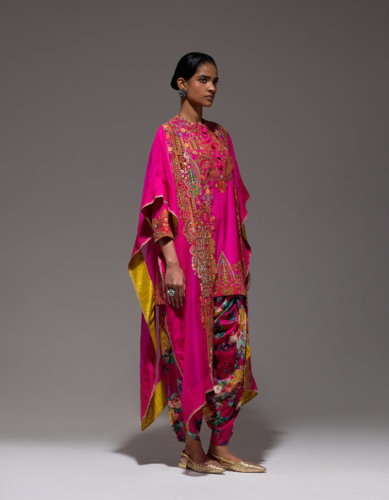 - Magenta rocket kurta with diya cape and ivery pleat salwar